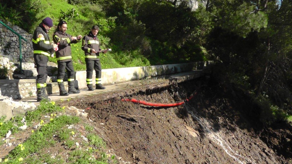 Anna Maria Boniello. Capri – Una frana di notevoli dimensioni ha colpito ieri mattina via Pizzolungo a Capri, interdetta dai Vigili del Fuoco per motivi di sicurezza e per timore di ulteriori crolli e cedimenti una delle passeggiate simbolo dell’isola. Una zona lontana dal centro e immersa nel verde dove si gode un eccezionale panorama che spazia dai Faraglioni a Villa Malaparte e che porta ad uno dei luoghi più suggestivi dell’isola, la grotta di Matromania, congiungendo il belvedere di Tragara con l’opposta zona alta dell’Arco Naturale. Nelle prime ore della mattinata un basso muretto che delimita un tratto di strada, all’altezza proprio dei Faraglioni, è franato a valle assieme ad una grande mole di terreno e vegetazione. Un ampio segmento di circa dieci metri di lunghezza che è precipitato lungo il costone per una cinquantina di metri, trascinando con sé oltre al terreno anche sterpaglie, cespugli ed alberi che sono arrivati quasi fino al mare. Alcuni delle poche persone che percorrono d’inverno quella strada hanno allertato i Vigili del Fuoco del locale distaccamento segnalando quanto accaduto. Una squadra si è immediatamente recata sul posto per verificare lo stato dei luoghi, assieme ai tecnici comunali ed al personale della Gori, la società che gestisce le risorse idriche sull’isola, visto che la frana ha danneggiato alcune condutture dalle quali dopo lo smottamento si è sprigionata una piccola cascata d’acqua, che lungo tutto il costone arrivava fino a mare. Anche gli uomini della Capitaneria di porto sono stati avvertiti dell’incidente e da mare hanno potuto fornire ulteriori valutazioni sullo smottamento, dato che dal costone non era possibile vedere nello strapiombo fin dove erano arrivati i detriti. Fortunatamente a parte il problema alla conduttura idrica non si sono registrati altri danni né alle ville vicine né a persone. Sulle cause dello smottamento sono in corso accertamenti, ma si ipotizza che i motivi della frana siano da imputare ad infiltrazioni di acqua dovute alle copiose piogge che sono cadute sull’isola nelle scorse settimane. Il tratto di strada, delimitato dal nastro apposto dai Vigili del Fuoco, rimane off limits finchè non saranno posti in atto tutti gli interventi di messa in sicurezza. Fortunatamente l’episodio si è verificato durante l’inverno in un periodo dell’anno in cui la strada è poco frequentata, vista la scarsità di turisti, che invece durante i mesi estivi si avventurano in quell’itinerario panoramicissimo e remoto, lungo il quale sono presenti ville di prestigio, non ultima la celebre “Casa come me”, la dimora dall’inconfondibile silhouette rossa, arroccata su Punta Massullo e dirimpettaia ai Faraglioni ed allo scoglio del Monacone che fu il buen retiro di Curzio Malaparte nei suoi anni capresi. Ma anche in inverno molti capresi non rinunciano a quella che è una delle passeggiate più belle e più conosciute fra la popolazione locale che si snoda in un serpentone che alterna tratti immersi nella vegetazione ed alcuni praticamente a picco sul mare, fino alle più di trecento scale che conducono alla Grotta di Matermania, che ai tempi romani era un luogo di culto dedicato al dio Mitra. E proprio su quelle scale si verificò nel marzo del 2013 un altro episodio franoso, con un tratto del muretto che si sbriciolò letteralmente, ma che fu poi messo subito in sicurezza in pochi giorni. Pochi mesi dopo, a dicembre alcuni frammenti di roccia caddero lungo la strada non molto distante dalla frana di ieri mattina, ed anche allora furono alcuni passanti ad accorgersene. Le cause anche in quel caso furono individuate nell’infiltrazione di acque piovane. Visti questi continui episodio dovuti anche a dissesto idrogeologico è necessario quindi avviare un piano di capillare monitoraggio e messa in sicurezza di questi luoghi che con la loro bellezza contribuiscono al mito dell’isola.