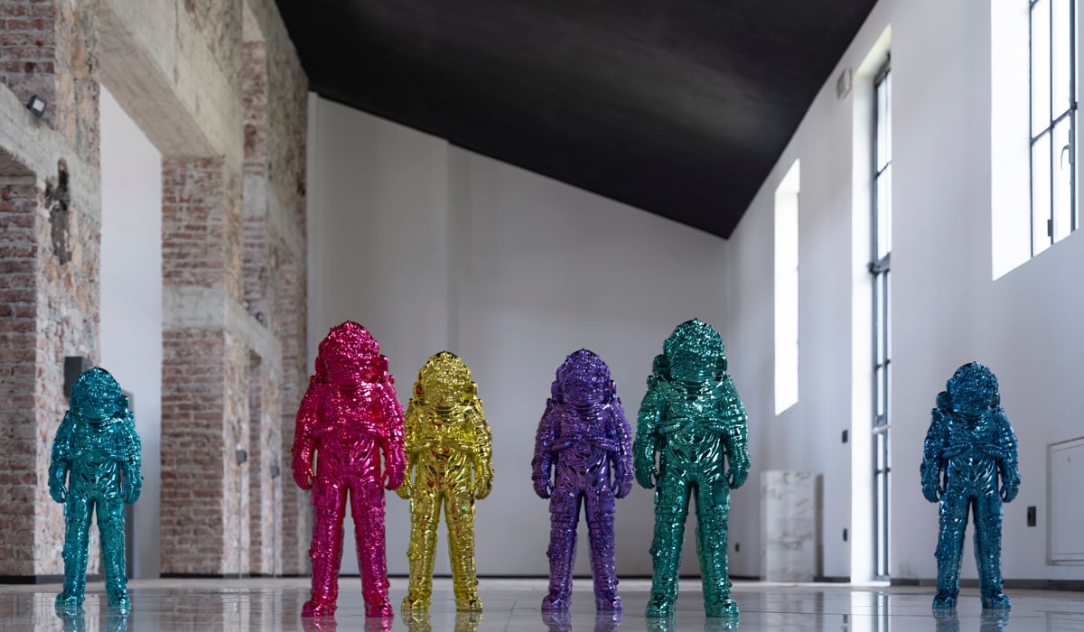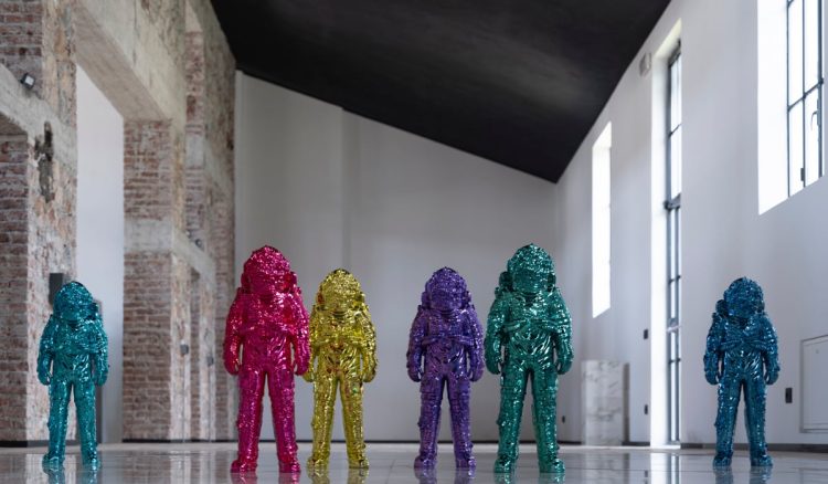 Flowered Slave ph Laura Veschi E tutto questo è sbalorditivo, perché oltre ad offrire la strada ad un umile esercizio continuo di confronto con il tutto, libera il pensiero aprendo delle porte per la riflessione sulla centralità dell’ io, come succede con l’opera di Kapoor , Cloud Gate , in cui l’artista britannico va dritto al sodo aprendo questi varchi, senza utilizzare alcuna figura, ma delegando l’immagine rappresentata al solo riflesso , in una sorta di iperrealismo portato all’estremo e in cui nessuna rappresentazione artificiale viene delegata per la descrizione della realtà. Nel progetto Spaceman Shiny di Tincolini , oltre alla bellezza della figura, al suo essere obiettivamente un modello esteticamente accattivante, c’è possibilmente tutto questo. C’è una profonda riflessione sulla condizione umana, fattore che incrementa lo spessore poetico del prodotto artistico, aumentandone l’appeal. Per questo motivo può valere la pena visitare una sua mostra: non sarà mai una cosa banale, così come può valere la pena avere una riproduzione dello Spaceman di 50 cm nella propria collezione di oggetti di arte. L’idea è ottima.