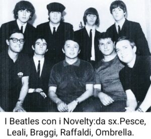 Pippo Baudo ed Enrico Maria Salerno presentarono l’evento in diretta RAI con la finalissima di Fiuggi.Nel 1965 la grande occasione: arrivarono i Beatles in Italia! Furono scelti come supporters Fausto Leali e i Novelty,i New Dada di Maurizio Arcieri, Guidone e gli amici,i Giovani Giovani e Peppino di Capri.Nel secondo tempo si esibirono i Beatles aprendo lo spettacolo con il celebre “Twist and Shout”.Le tappe dell’unico concerto italiano furono il 24 giugno al Velodromo Vigorelli di Milano, il 26 giugno al Palazzo dello Sport alla fiera del mare di Genova, e il 27-28 di giugno al Teatro Adriano di Roma, purtroppo non registrati e snobbati dalla RAI.I biglietti dei concerti erano reperibili tramite la rivista “Ciao Amici”. La conferma definitiva avvenne nel 1966 partecipando al “Giro Festival” al seguito del 49° Giro d’Italia con la canzone “Mamma perdonami”,e apparvero in TV durante le tappe di Parma e di Monte Carlo.Furono ospiti della storica trasmissione radiofonica “Bandiera Gialla” condotta su Radio 2 da Arbore e Boncompagni, e fu in quel momento che presentarono la famosa canzone “A chi “, cover della versione USA di Roy Hamilton “Hurt” del 1954 portata alla ribalta dalla cantante italo-americana Timi Yuro.Si esibirono anche in concerti al Bang Bang di Milano con la partecipazione di Teo Teocoli. In seguito il gruppo cambiò casa discografica, passando dalla Jolly alla Ri.Fi. Records.Il grande risultato arrivò nel 1967 ricevendo sulla Terrazza Martini di Milano il primo disco d’oro per la canzone “A chi”.Nel 1968 Leali partecipò al Festival di Sanremo con la canzone “Deborah” in coppia con Wilson Pickett,nome attribuito alla figlia avuta da Milena Cantù,la grande incognita del 45 giri “La ragazza del Clan” di Celentano. In seguito Leali verrà scelto da Pickett come padrino della figlia anch’essa chiamata Deborah.I Novelty facevano parte del Clan Celentano Center,e con loro eseguirono i concerti nei locali più belli d’Italia ,in primis alla Bussola di Viareggio.Leali nello stesso anno divorziò dai Novelty, e Raffaldi entrò nel complesso dei New Rockers di Peppino di Capri, partecipando a tournée negli USA esibendosi al Metropolitan di New York,poi in Canada, Venezuela, Brasile, Australia, Emirati Arabi e in Europa.