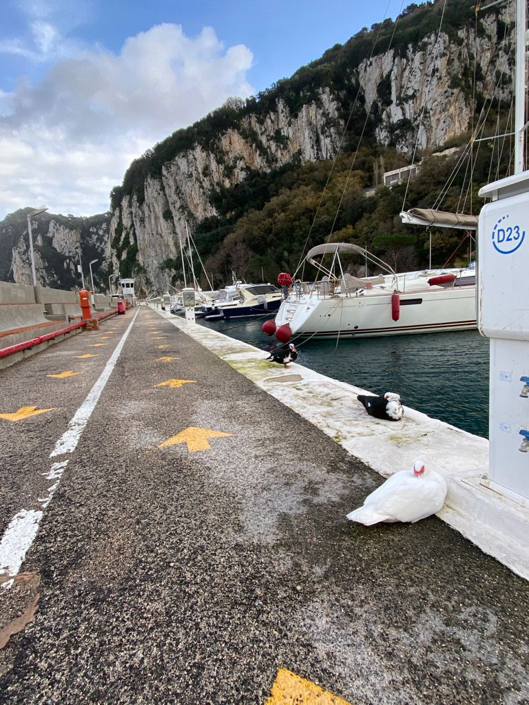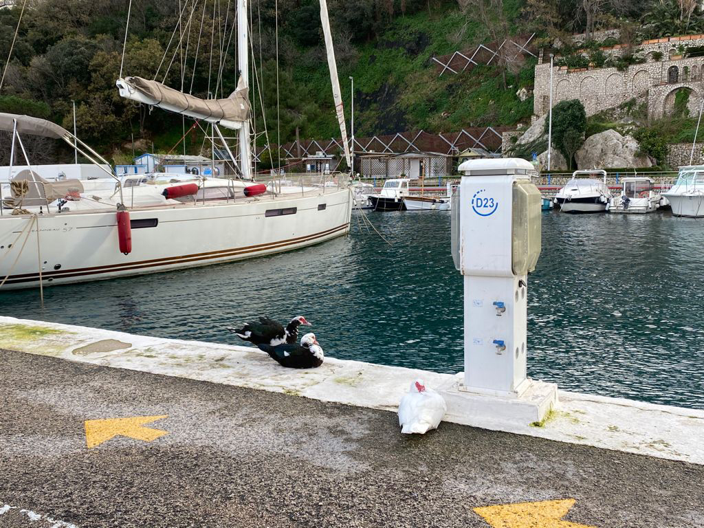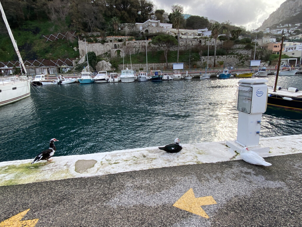 All’ apparire dei primi raggi di sole dopo un lungo letargo invernale si sono riviste le anatre che vivono sulla spiaggia libera di Marina Grande e nelle banchine del porto turistico di Capri. Lo spettacolo è stato accolto dai pescatori e gli operatori del porto con sorpresa e le anatre hanno scorrazzato in lungo e largo, alcune fermandosi sul tettuccio della pompa di benzina, altre passeggiando lungo le banchine ed un gruppo, forse una famigliola, si è riunito per scaldarsi al primo sole. Le foto riprese da Giuseppe Rosato hanno fatto il giro della rete ed è stato ritenuto dai navigatori isolani come un beneaugurale episodio per la futura stagione turistica, dopo il passaggio dei delfini avvenuto ieri.