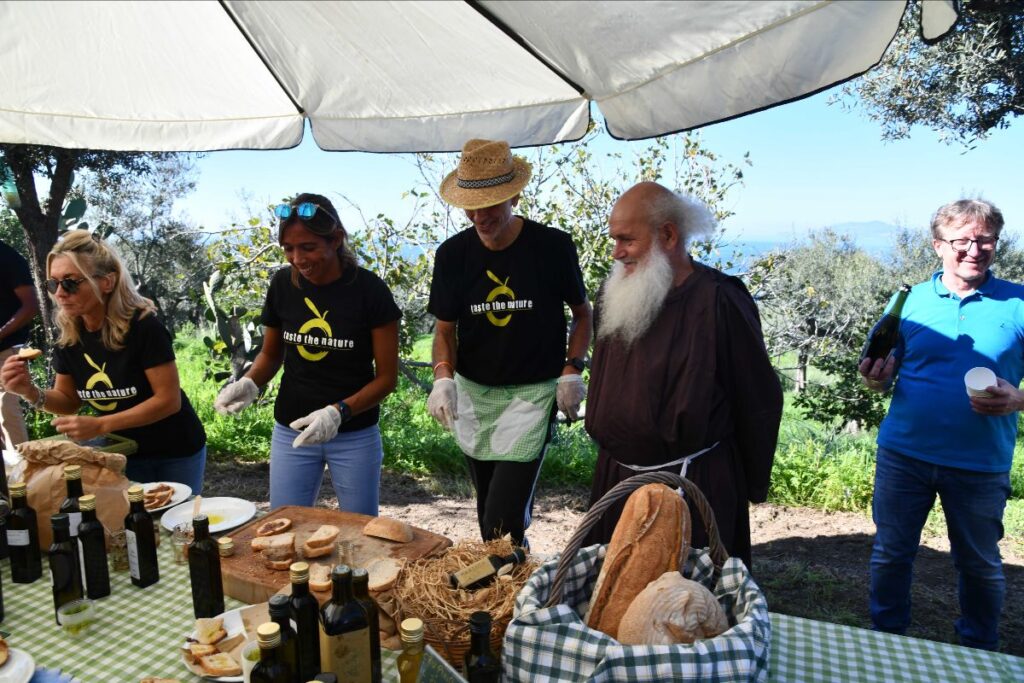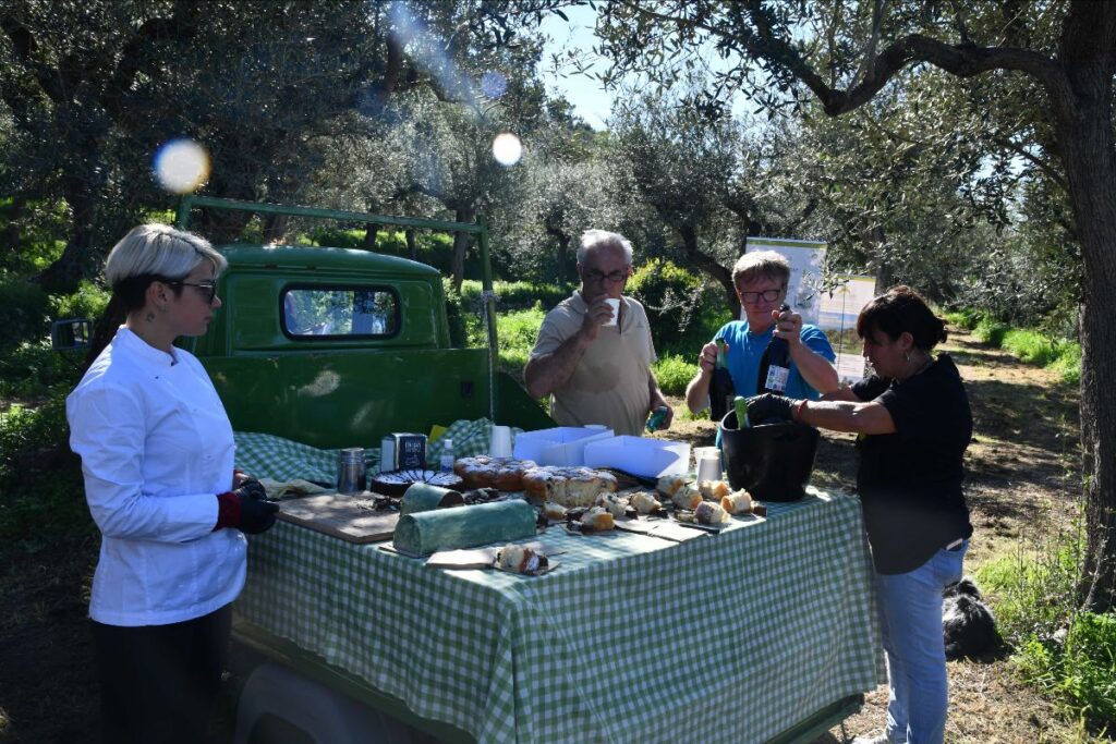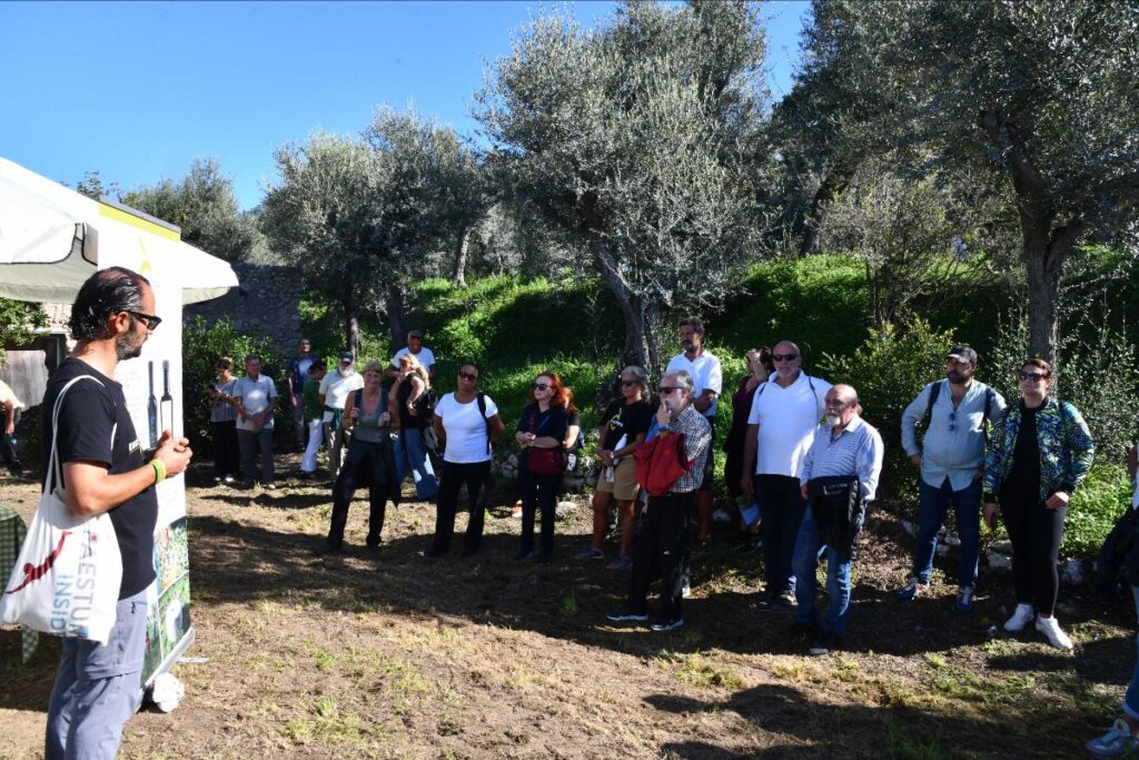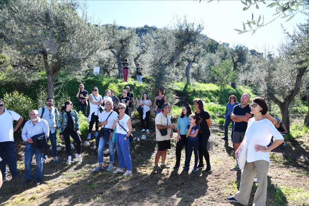 Lungo il percorso l’agronomo dell’associazione, dott. Angelo Lo Conte coadiuvato dal dott. Carlo Lelj Garolla ha illustrato le specificità del progetto di olivicoltori, mostrando a vista le aree recuperate alla macchia, dove sono stati installati negli anni i nuovi oliveti e quelle dove si è reimpiantato, integrando le piante morte.