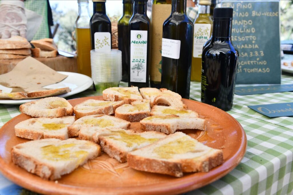 In questa zona si è tenuto il flashmob promosso dall’Associazione Città dell’olio: #ABBRACCIAUNOLIVO e di seguito la degustazione finale, dove ogni socio ha fornito un assaggio del primo olio prodotto quest’anno e dello scorso anno, in un contesto armonioso di condivisione di sapori ed esperienze estrattive. Insieme al pane ed olio è stato offerto agli ospiti della passeggiata anche un assaggio di zuppe a base di legumi locali e patè di olive.