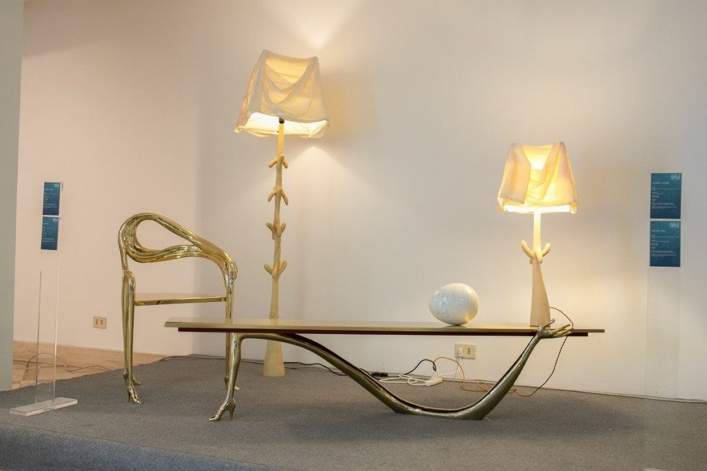 In esposizione anche diverse opere di design del genio surrealista, tra le quali il famoso Divano Mae West.