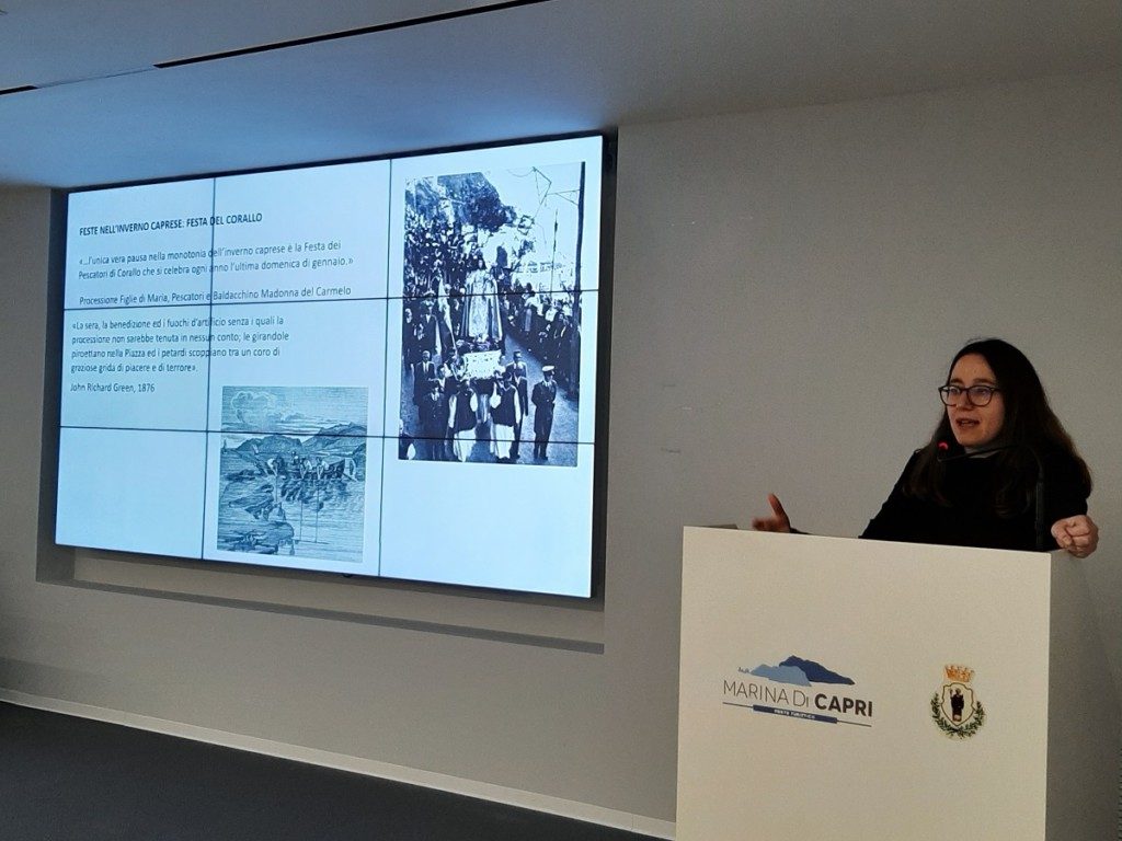 Dopo la conferenza del Prof. Esposito sulla Capri Sehnsucht di artisti, poeti, intellettuali tedeschi e la riflessione di Massimo Cerrotta sulle visioni utopiche e distopiche che gli autori anglofoni Norman Douglas, Compton Mackenzie e H.G.Wells offrirono di Capri, conferenze tenute nella raccolta sala del Centro Emporium, invece, giovedì 20, in occasione dell’arrivo del Carnevale, la prof. Manuela Schiano ha passato in rassegna alcuni momenti della storia del carnevale isolano: dalle testimonianze della Festa del Corallo ottocentesca, all’esperienza del poeta Tristan Corbière e degli ospiti della Locanda Pagano; dal Carnevale fascista di Dusmet al Carnevale Romantico degli anni ’50, fino ad arrivare al Carnevale odierno che vede grandi protagonisti gli alunni dell’IISS Axel Munthe.