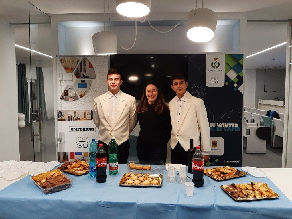 Dopo la conferenza gli alunni dell’IISS Axel Munthe, brillantemente guidati dallo chef prof. Angelo Saporito, hanno offerto al pubblico una selezione di dolci di Carnevali.