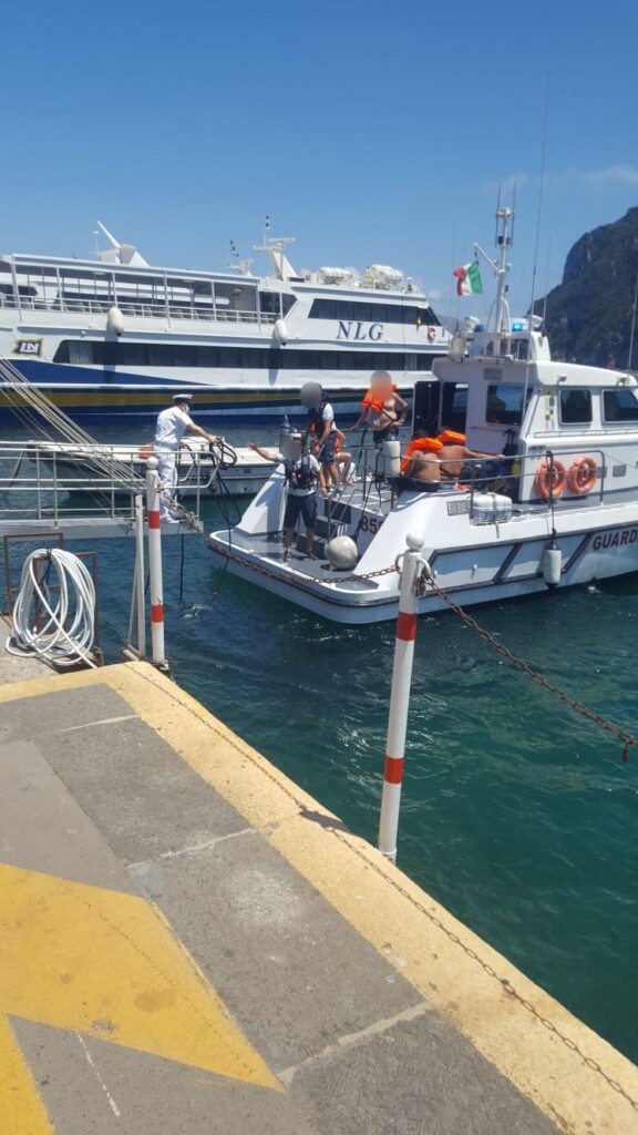 CON IL COORDINAMENTO DEL REPARTO OPERATIVO DELLA DIREZIONE MARITTIMA DI NAPOLI, IN POCHI ATTIMI SOPRAGGIUNGEVA SUL PUNTO IL BATTELLO GC B 123, GIA’ IN MARE DAL MATTINO PER ATTIVITA’ DI VIGILANZA E CONTROLLI NELL’AMBITO DEL DISPOSITIVO MARE SICURO. IL BATTELLO PROVVEDEVA QUINDI NELL’IMMEDIATO AL TRASBORDO DEGLI OCCUPANTI A BORDO, VISIBILMENTE SCOSSI PER L’ACCADUTO, MENTRE GIUNGEVA IN ZONA ANCHE LA MOTOVEDETTA CP SAR 858 CHE PRENDEVA A BORDO I NAUFRAGHI, FORNENDO AL CONTEMPO ASSISTENZA E MONITORAGGIO ANTINQUINAMENTO NEI CONFRONTI DELL’UNITA’ LA QUALE, PRIVATA DI UNA PARTE D’ACQUA PRESENTE A BORDO, VENIVA CONDOTTA IN SICUREZZA IN PORTO DA PARTE DEL GRUPPO ORMEGGIATORI DI CAPRI, SOTTO L’ASSISTENZA DELLA MOTOVEDETTA SAR.