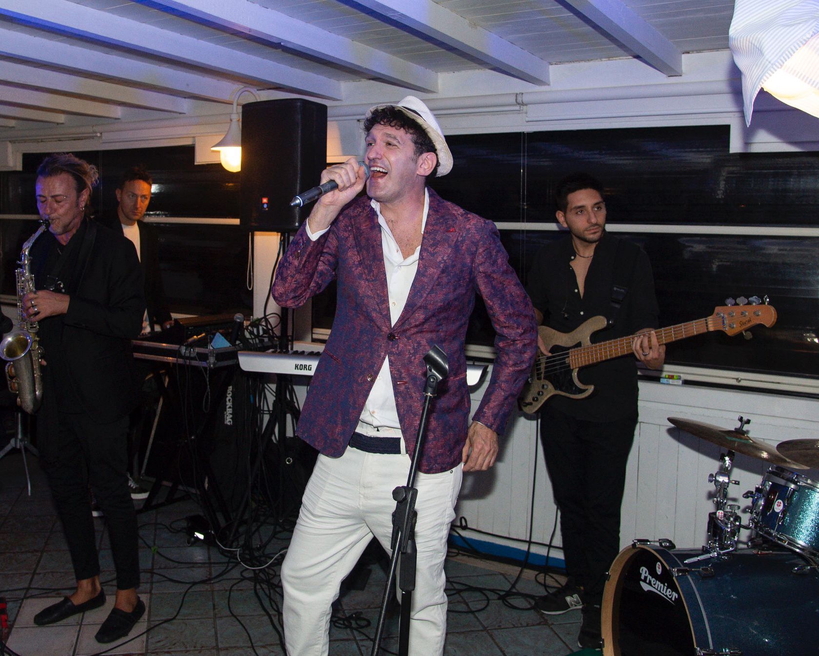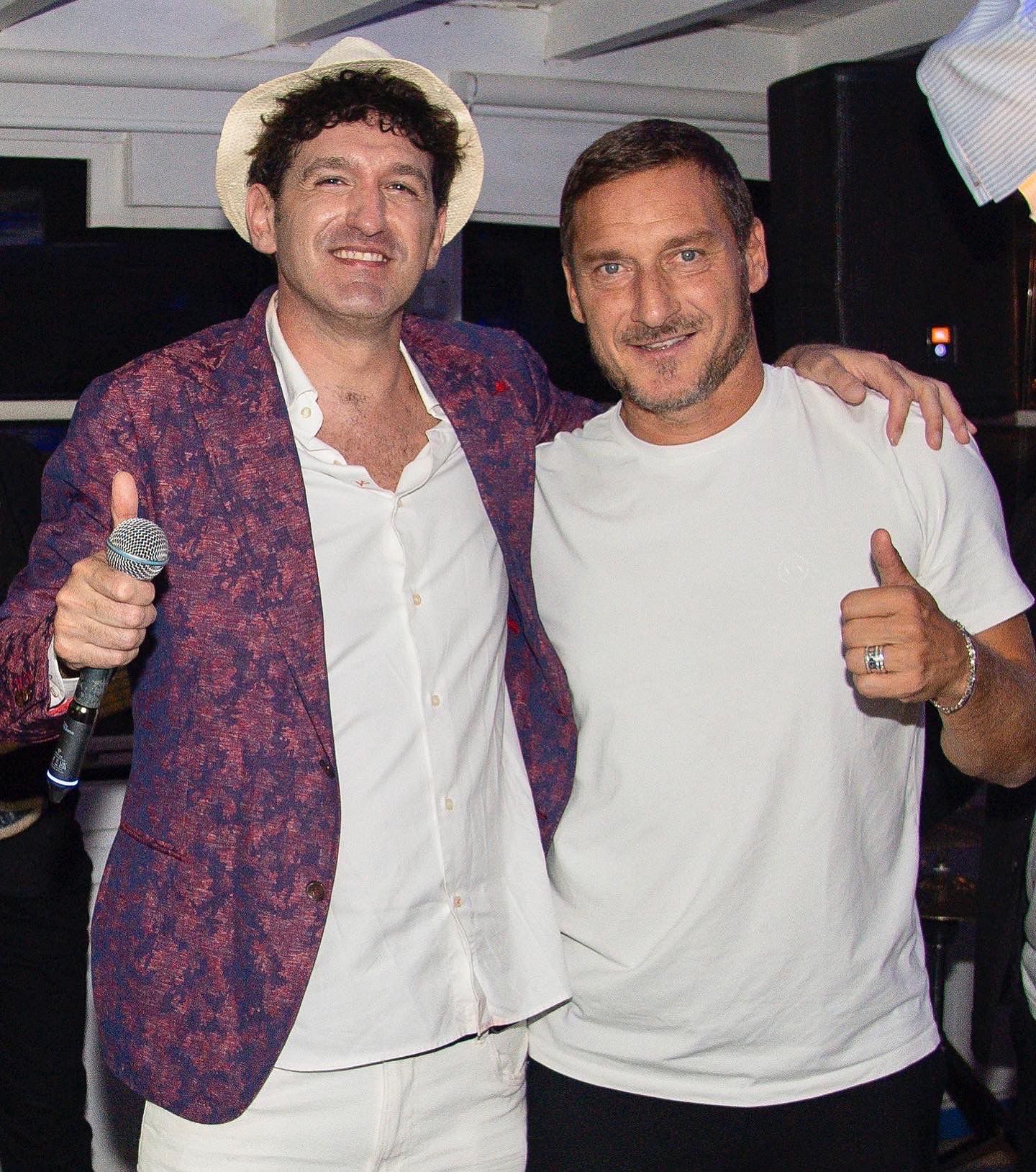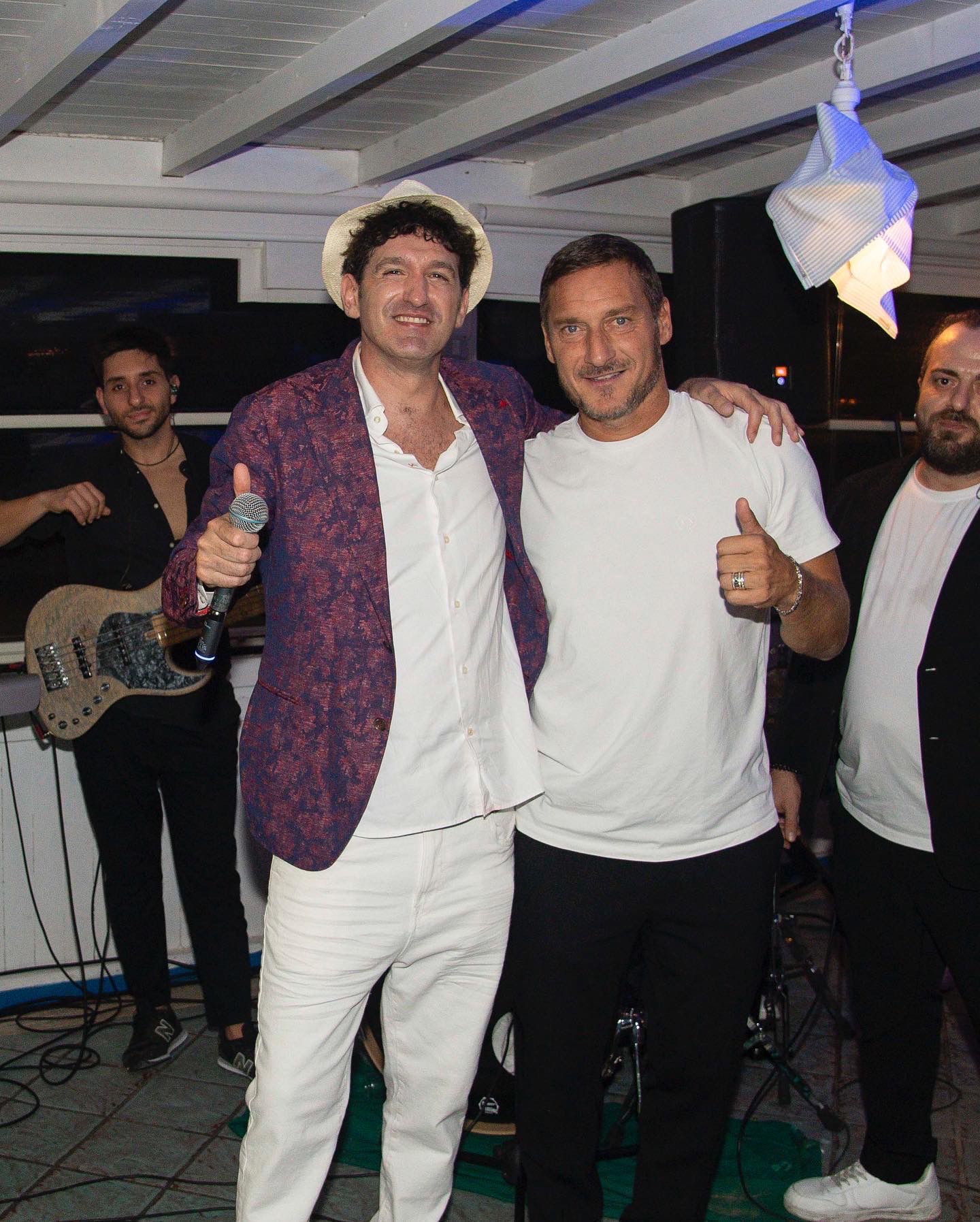 Compleanno a sorpresa sulle note dell’Anema e Core Band per Francesco Totti che la notte del 27 settembre ha spento 46 candeline nella romantica location dell’Isola del Pescatore, il ristorante sul mare ai piedi del Castello di Santa Severa (Roma). Gianluigi Lembo e la sua band hanno lasciato per una sera la Taverna caprese per intrattenere il Capitano , parenti e amici in un’atmosfera allegra e familiare. E al fatidico “Tanti auguri” , Totti ha raggiunto Gianluigi sul palco per un abbraccio affettuoso ed una foto di rito con tutta la band. In occasione del party a sorpresa organizzato dagli amici per l’ex calciatore, il locale era in uso esclusivo, e Totti è arrivato bendato, guidato per mano dalla nuova compagna Noemi Bocchi.