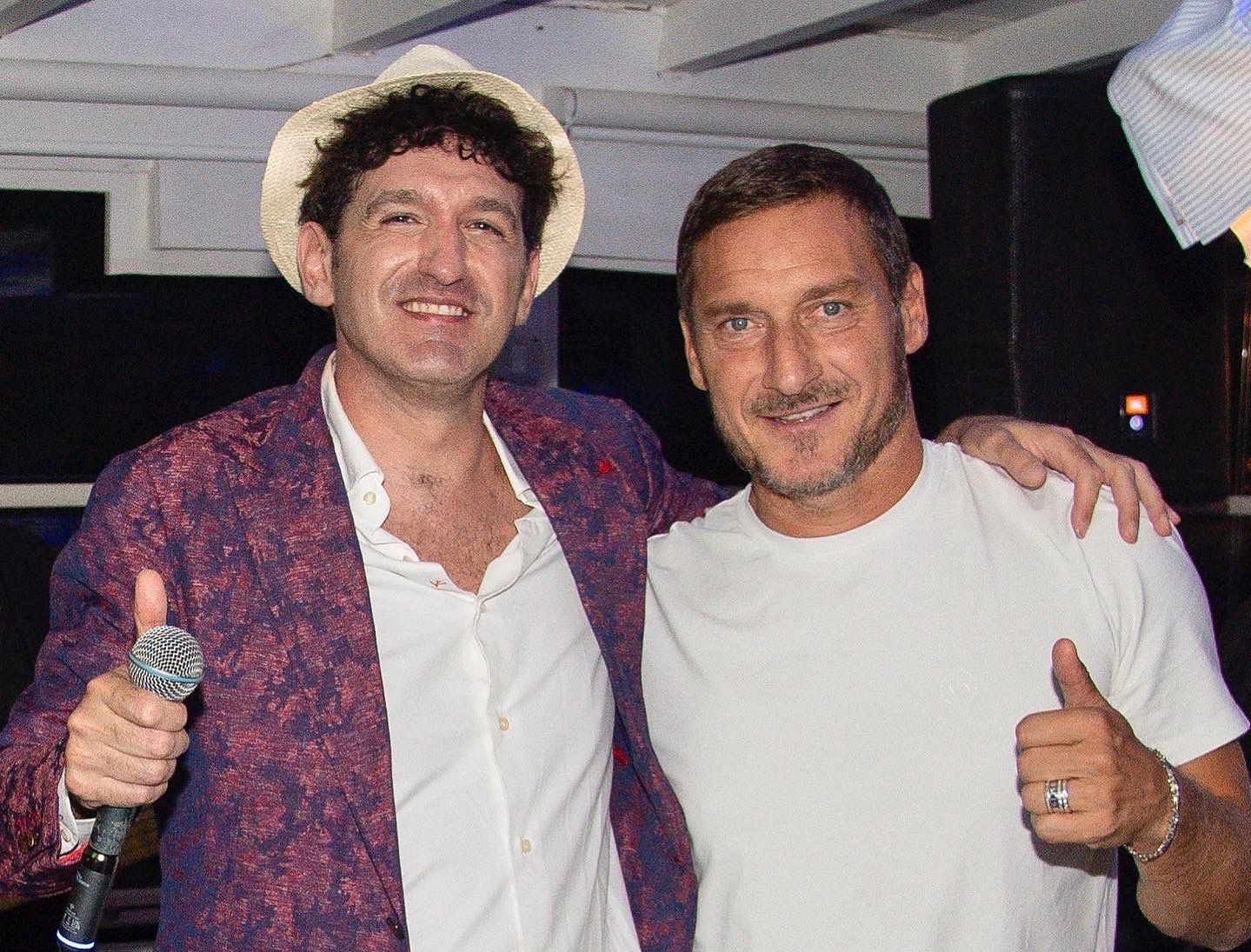 Compleanno a sorpresa sulle note dell’Anema e Core Band per Francesco Totti che la notte del 27 settembre ha spento 46 candeline nella romantica location dell’Isola del Pescatore, il ristorante sul mare ai piedi del Castello di Santa Severa (Roma). Gianluigi Lembo e la sua band hanno lasciato per una sera la Taverna caprese per intrattenere il Capitano , parenti e amici in un’atmosfera allegra e familiare. E al fatidico “Tanti auguri” , Totti ha raggiunto Gianluigi sul palco per un abbraccio affettuoso ed una foto di rito con tutta la band. In occasione del party a sorpresa organizzato dagli amici per l’ex calciatore, il locale era in uso esclusivo, e Totti è arrivato bendato, guidato per mano dalla nuova compagna Noemi Bocchi.