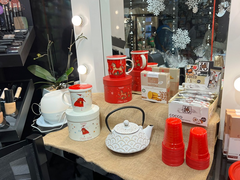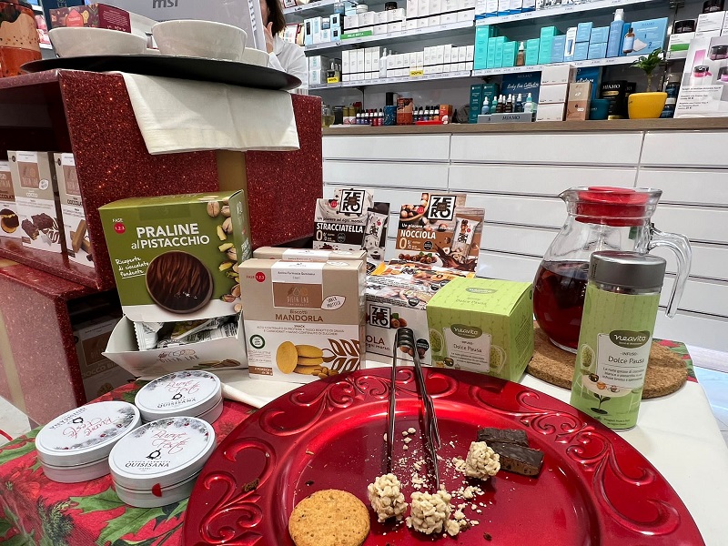 Musica dolce natalizia, un avvolgente profumo di melograno e ribes nero con lampade a diffusore a ultrasuoni hanno accolto gli ospiti e gli isolani. Cromoterapia, aromaterapia e i sorrisi dolci del personale hanno allietato un grigio pomeriggio caprese. Agli ospiti intervenuti sono state offerte tisane al gusto di