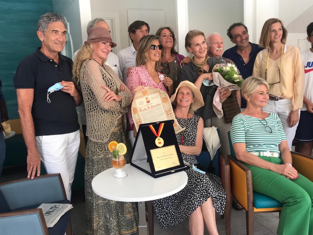 Fragile ma forte allo stesso tempo, passo incerto ma salda la presa al mio braccio. Martha De Laurentiis, tra telecamere e paparazzi, ha varcato la soglia del Comune di Capri per ritirare la pergamena con la prestigiosa onorificenza di Cittadina Illustre di Capri e Ambassador nel mondo di Capresità concessa dall’Amministrazione Comunale. Insieme a un bouquet di fiori. Martha è la sposa dell’isola azzurra e sorride all’ombra del suo cappello di paglia a onda.