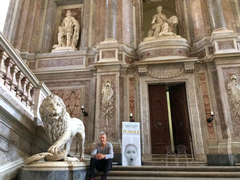 La mostra “HUMAN fights rights lights”, autocurata dallo stesso Ciceri, è presentata in prima assoluta nelle retrostanze settecentesche degli appartamenti storici del Palazzo reale, mentre dalla falsa cupola dello Scalone d’Onore del Vanvitelli verrà diffusa JUNGLE, un’installazione sonora concepita per immergere il pubblico nell’atmosfera della giungla primaria. Tutto il sonoro deriva da un intervento creativo e complesso applicato alle forme d’onda delle voci umane che cantano i Diritti nel secondo atto di HUMAN. JUNGLE riflette sull’ambiguità dell’apparenza estetica e sui diritti come leganti, senza i quali la possibilità stessa di una società umana verrebbe meno.
