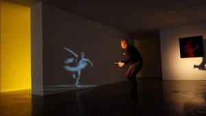 Costante ai tre video è l’associazione e l’ambiguità tra l’alta definizione del testo da leggere e la bassa definizione delle immagini da guardare. L’artista videoregistra i tre atti con una telecamera ad alta risoluzione ma li filma direttamente fuori fuoco promuovendo un contrasto emozionale tra la logica descrittiva delle parole a fuoco e la logica della sensazione nei filmati sfocati.