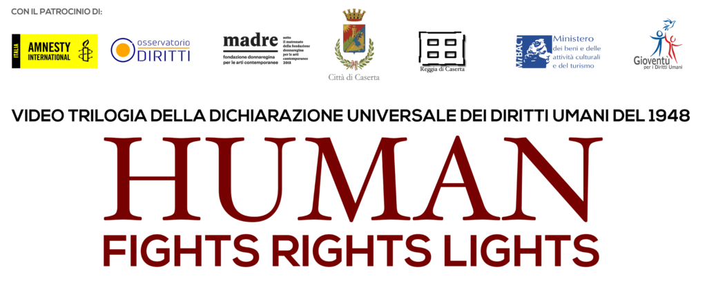 “HUMAN fights rights lights” è il titolo della video trilogia dell’artista Umberto Ciceri che teatralizza il testo integrale della Dichiarazione Universale dei Diritti Umani del 1948, in occasione del suo settantesimo anniversario, attraverso l’ambiguità etica ed estetica del linguaggio mediatico adottato.