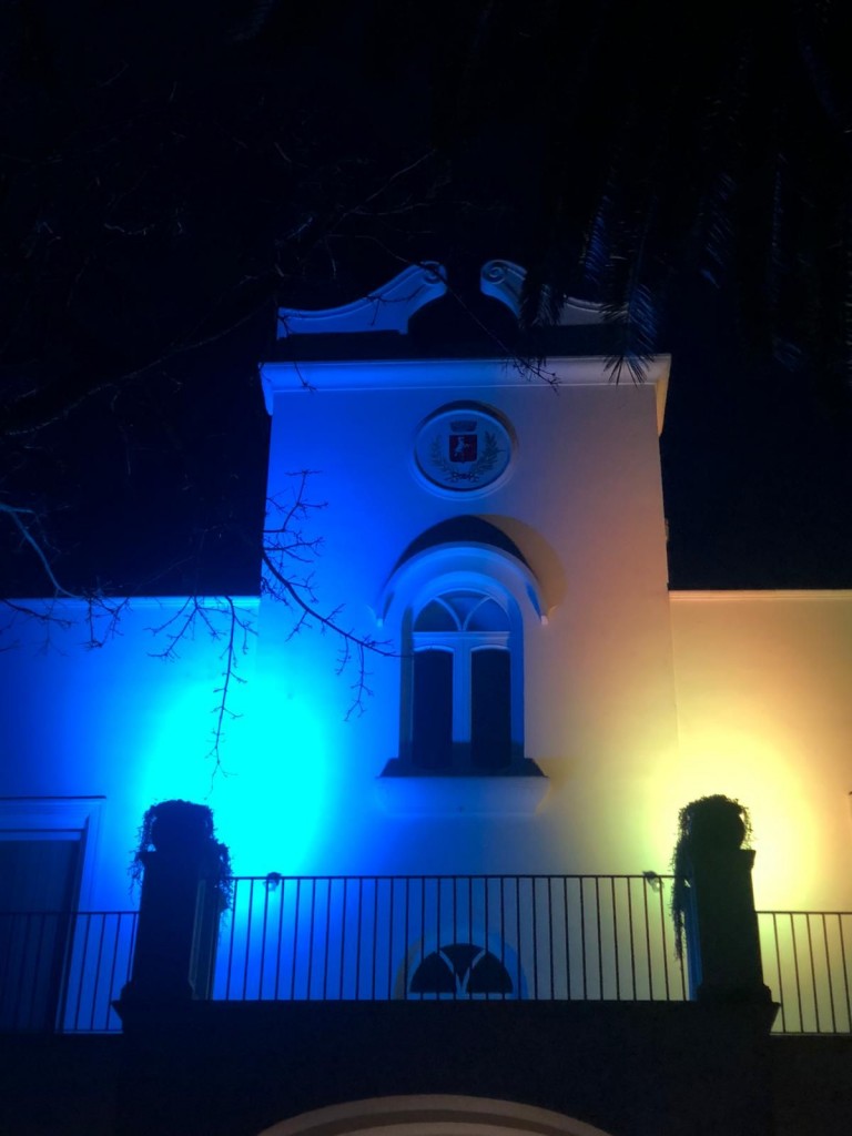 Gli abitanti di Anacapri che rientravano a casa dopo l’imbrunire sono stati attratti da un enorme fascio di luce giallo blu che illuminava per intero la facciata del palazzo municipale.L’inattesa colorazione che rappresentava la bandiera dell’Ucraina è stata voluta dall’amministrazione di Anacapri che in tale maniera ha voluto esprimere la vicinanza alla grande comunità ucraina che vive stabilmente ad Anacapri da parecchi anni e lavorano nelle attività locali di vario settore dall’edilizia al commercio e presso famiglie private. Si allunga con il gesto simbolico di questa sera l’elenco di iniziative di solidarietà che vengono organizzate sull’isola da Istituzioni, associazioni e dal mondo del volontariato.