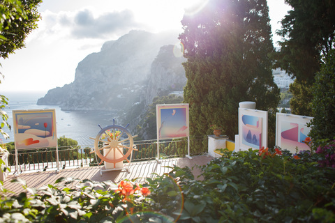 Colori tenui pastello che ricordano il tramonto, sfumature tra il corallo ed il blu, così la terrazza di Villa Hibiscus a Tragara si veste d’arte, attraverso le delicate tele dell’artista californiano Maxwell McMaster, con l’inaugurazione della mostra “Vibrations”. L’evento, il secondo della kermesse estiva a cura della Plan X Art Gallery, è stato pianificato nel dettaglio da Nicolò Stabile e Marcello Polito, i due giovani galleristi che hanno deciso di movimentare l’estate caprese all’insegna dell’avanguardia contemporanea, portando sull’isola grandi nomi della fotografia e pittura californiana, ultimi in ordine cronologico il fotografo di Hollywood,Tyler Shields e l’artista Maxwell McMaster. Sette opere ispirate e create appositamente a Capri e pensando a Capri, influenzate dai colori delle albe e dei tramonti capresi che McMaster ha realizzato dopo aver osservato attentamente le gradazioni cromatiche dell’isola, durante il suo soggiorno. Ad impreziosire ancor più il solo show, la scultura “Capri Sun”, un timone di un veliero d’epoca dipinto interamente a mano dall’artista con tutte le sfumature del tramonto. Le opere realizzate con aerografo e acrilico su tela sono l’esplorazione immaginaria di una terra straniera, agli occhi dell’artista, che percorre attraverso sfumature nuove e suggestive il mito intramontabile di Capri. Numerosa la presenza di habituè ed ospiti interazionali per l’inaugurazione di “Vibrations”, sabato scorso sulla terrazza di Villa Hibiscus. Le opere saranno in esposizione fino a fine agosto negli spazi della Plan X art Gallery, sul rooftop della boutique la Parisienne in Piazzetta. A metà settembre i due giovani galleristi Stabile e Polito, si sposteranno a Milano, altra sede della Plan X Art Gallery, dove hanno in programma una collettiva dei loro artisti più originali, in occasione della Milano fashion week.