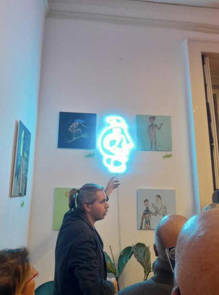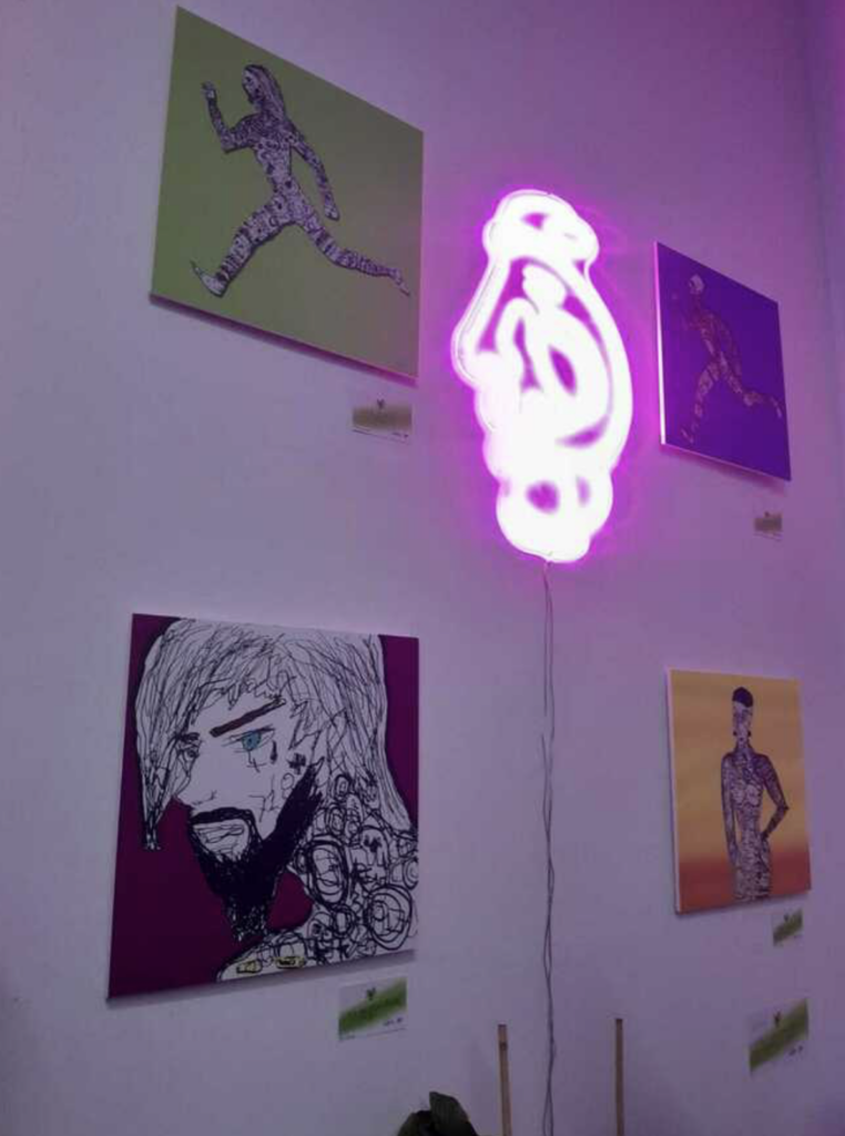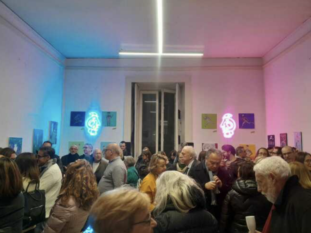 Figure nude, di varie forme e sembianze che Luke ha architettato prendendo spunto anche dall’arte antica e tribale. In queste figure che appaiono nelle opere è molto importante la scelta del colore che spesso l’autore innesta dopo la stampa grafica sull’opera stessa con uniposca e pennarello. Un colore a volte spruzzato sul supporto, altre volte solo marginale ma che dà un tocco arricchente ed unicizzante all’opera. A dare una cornice grafica ulteriore a tutto l’impianto della mostra vi stato è l’intervento di illuminazione dello spazio dell’ A’Mbasciata che ha permesso di fruire dell’intero percorso espositivo come un unicum, impreziosito dalle policromie tra il rosso, il verde e il blu. La mostra è visitabile al pomeriggio fino a domenica 14 gennaio.