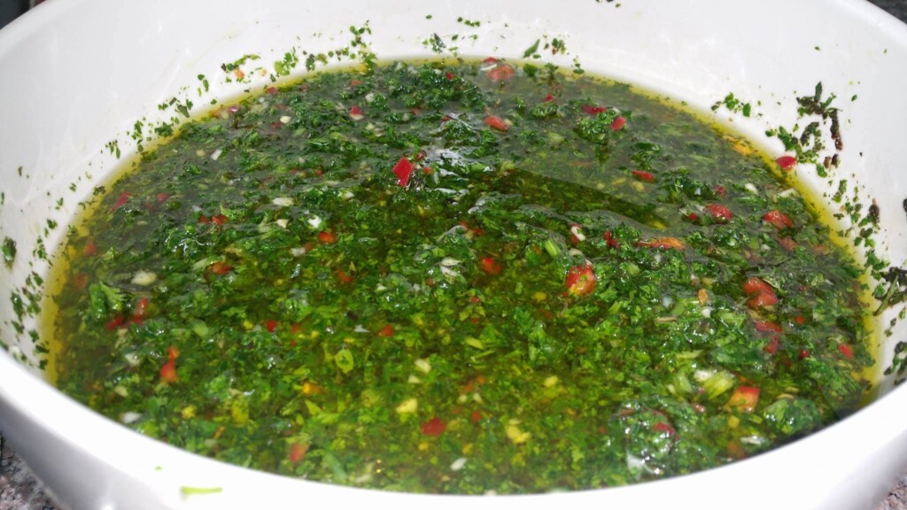 Una seconda ondata di emigrazione avvenne dopo la prima guerra mondiale e ben presto le immagini di Peron ed Evita presero il posto delle ‘fiurelle’ di Mussolini e Re Umberto. Ancora adesso a Mar del Plata sono più di centocinquanta gli abitanti di origine caprese. Uno dei ristoranti più noti è La Farola gestito dagli eredi di una nota famiglia anacaprese”. In attesa che l’inverno e l’attuale situazione siano alle spalle, lasciando, appunto, spazio e tempo alle grigliate all’aperto, ecco la ricetta del cium cium caprese alias chimichurri