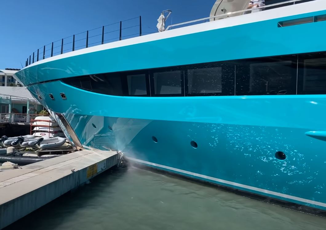 “Go”, varato nel 2018 da Turquoise Yachts, ha un valore stimato in 75 milioni di euro ed è di proprietà del miliardario svizzero Hans Peter Wild, ceo della nota azienda di succhi di frutta Capri-Sonne (Capri Sun) . A bordo di “Go” troviamo una palestra con bagno turco, una piscina, un eliporto e addirittura un ospedale. Secondo fonti locali, l’ imbarcazione avrebbe subito danni significativi, ma non si registrano feriti, né a terra, né tra i componenti dell’ equipaggio. La scena è stata ripresa dai telefonini di più persone che si trovavano a bordo di altre imbarcazioni ormeggiate nei paraggi e i video hanno presto iniziato a circolare in rete.