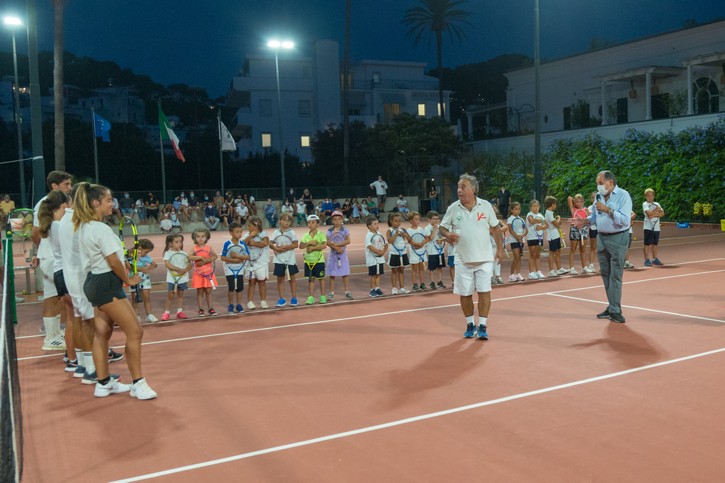 Il tradizionale Saggio Estivo di Tennis, si è tenuto ieri sera sui campi rossi del Tennis Club Capri. Un evento che ha raggiunto il 48esimo anno dalla sua prima edizione ed anche quest’anno ha raccolto un grande successo ed entusiasmo da parte del pubblico, dei genitori e delle personalità che hanno affollato lo storico club in cui ogni anno chiude la sessione estiva della scuola tennis con un saggio degli allievi sia capresi che villeggianti.Ben 60 giovani tennisti che hanno partecipato alla scuola tennis estiva e si sono esibiti con varie esercitazioni seguendo la progressione didattica del gioco. A presiedere lo staff del club il Presidente Peppino Di Stefano che nella sua carriera è stato anche arbitro internazionale ed ha ricevuto i complimenti per la sua attività sportiva dal Sindaco di Capri Marino Lembo e dall’Assessore allo Sport e Vice Sindaco Ciro Lembo ed i saluti del Ministro dello Sport Vincenzo Spadafora. Il primo cittadino prima dell’esibizione dei giovani tennisti ha portato i saluti dell’amministrazione per l’impegno sportivo che vede impegnati i maestri con i giovani atleti. Hanno presenziato alla manifestazione alcuni componenti della famiglia Breglia, proprietari del complesso sportivo. Poi il via al saggio che ha visto esibirsi giovani atleti che in pochi mesi con la scuola tennis di Capri hanno raggiunto già un livello di preparazione tecnica elevato.