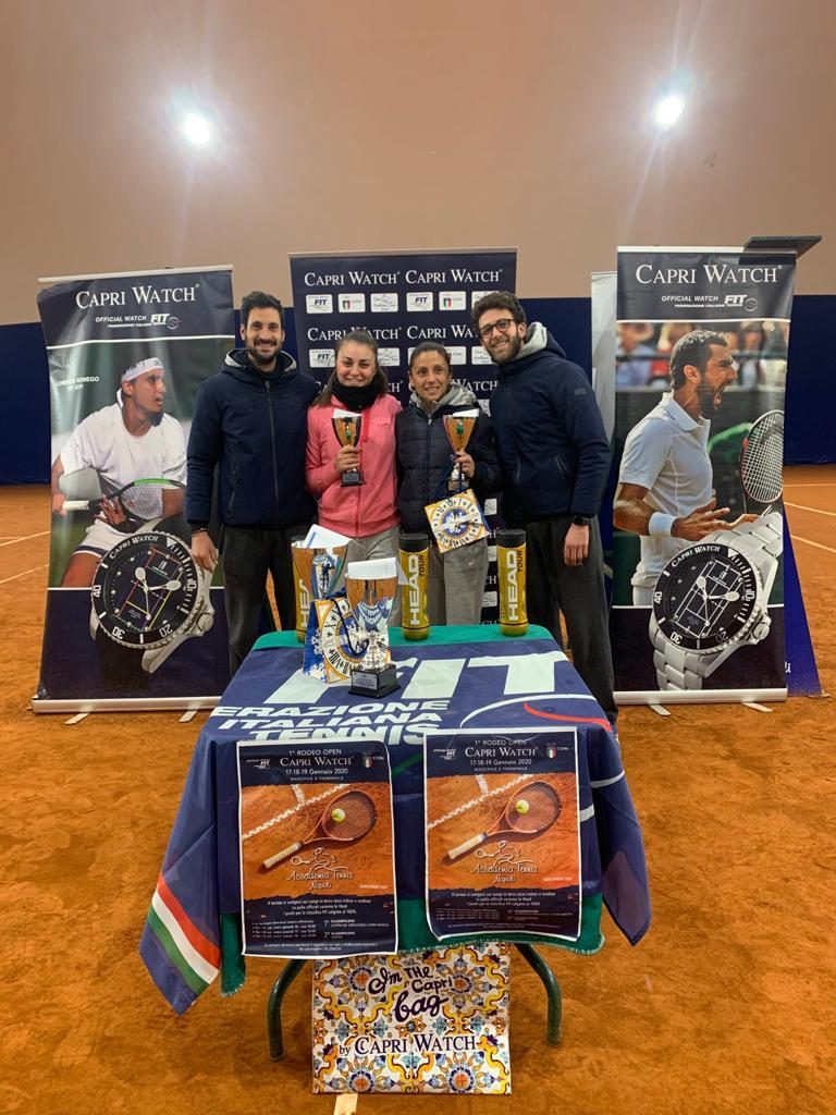 Oltre 130 iscritti, sette regioni rappresentate, tanti tennisti in gara con un passato in classifica mondiale: l’Open Capri Watch dell’Accademia Tennis Napoli, giunto alla seconda edizione, si conferma l’evento principe di inizio 2020 in Campania. La prima occasione per tanti giocatori di livello nazionale di misurarsi agonisticamente e di programmare così gli altri mesi di stagione invernale, in tornei e campionati. L’Open Capri Watch nasce con la formula Rodeo (torneo in tre giorni e set a 4) da un’idea di Silvio Staiano, l’appassionato Ceo di Capri Watch, uno degli sponsor ufficiali della Federtennis, che tra i suoi testimonial vanta eccellenze mondiali come Matteo Berrettini, Fabio Fognini, Marin Cilic. Staiano, insieme allo staff tecnico e dirigenziale dell’Accademia, ha progettato questo tipo di torneo, con un successo di partecipanti da record in Campania, in una data particolare come la seconda metà di gennaio. Il vincitore femminile è un nome di livello internazionale: la giocatrice sarda Anna Floris, già numero 129 del mondo negli anni del boom del tennis femminile italiano (Schiavone, Errani, Pennetta, Vinci) e vincitrice di 12 tornei ITF. La Floris, in classifica 2.2, ha battuto in finale la napoletana Lorenza Cuomo (2.7) 4-2 4-1. Nel torneo maschile titolo al napoletano Giovanni Cozzolino, punto di forza del New Torre del Greco in A1, vice campione campano assoluto in carica, che ha battuto in finale il sardo Marco Dessì, 2-4 4-1 7-2 (al tie break conclusivo). Ai due vincitori, oltre i premi del torneo, sono stati consegnati i tradizionali cronografi di Capri Watch, ormai griffe affermata e notissima nel mondo del tennis italiano e internazionale. Il Capri Watch Open sta diventando un appuntamento di livello nazionale ha spiegato il direttore generale dell’Accademia Tennis Napoli Aldo Russo -, con tutte le regioni del Centro-Sud Italia rappresentante da team e da singoli giocatori, che scelgono la nostra struttura, compresa la Sardegna, con una giocatrice di livello mondiale come Anna Floris. L’idea di un appassionato come Silvio Staiano è stata vincente, un torneo Open in gennaio ha per il tennis grande importanza sia nella preparazione della stagione sia nei programmi agonistici, ecco la notevole partecipazione. Presto bisseremo l’evento, intanto ci godiamo un evento che nei tre giorni del fine settimana appena concluso ha portato quasi mille presenze all’Accademia. Una vera festa del tennis in Campania.