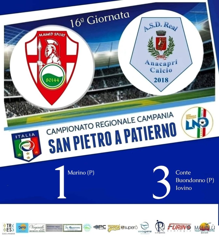 Dopo pochi minuti dall’inizio del match infatti, la squadra di Mister Staiano andava in rete con Clarence Conte. Subito dopo arrivava il raddoppio grazie a un rigore trasformato magistralmente da Luigi Buondonno. Nella seconda frazione Iovino metteva il sigillo sulla vittoria mentre un rigore di Marino al 40 esimo consentiva al Maued di siglare il gol della bandiera e di fissare il risultato finale sull’ 1-3. La squadra di Anacapri continua quindi la corsa verso le posizioni di vertice della classifica accorciando le distanze dalla prima posizione.