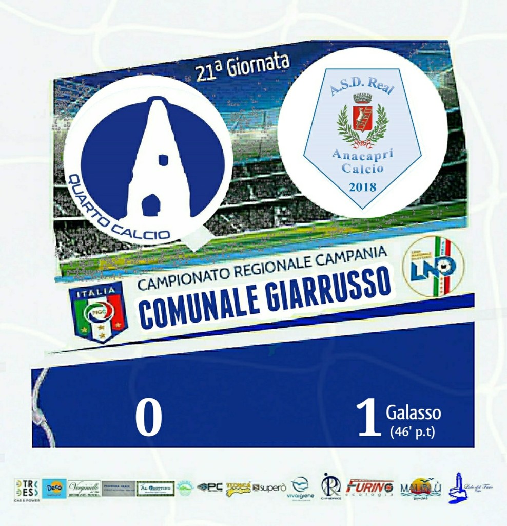 Il Real Anacapri espugna il Giarrusso di Quarto con una grande prova di carattere. Gli uomini di mister Staiano si sono imposti per una rete a zero al termine di una partita di alta classifica equilibrata e ben giocata da entrambe le compagini.