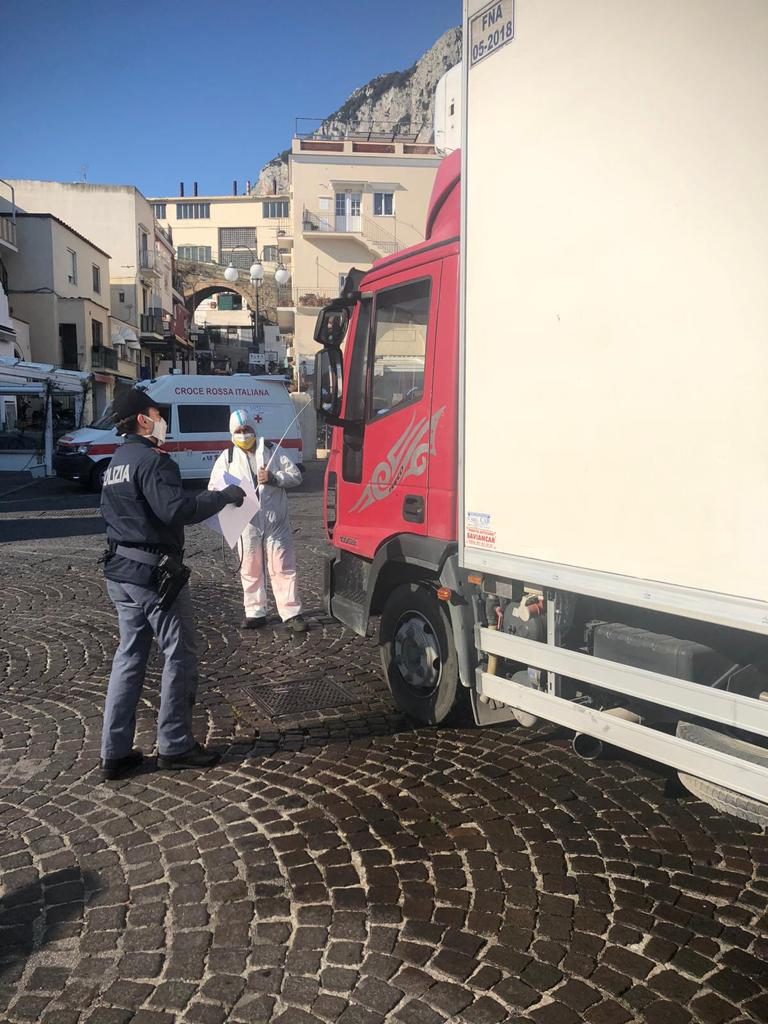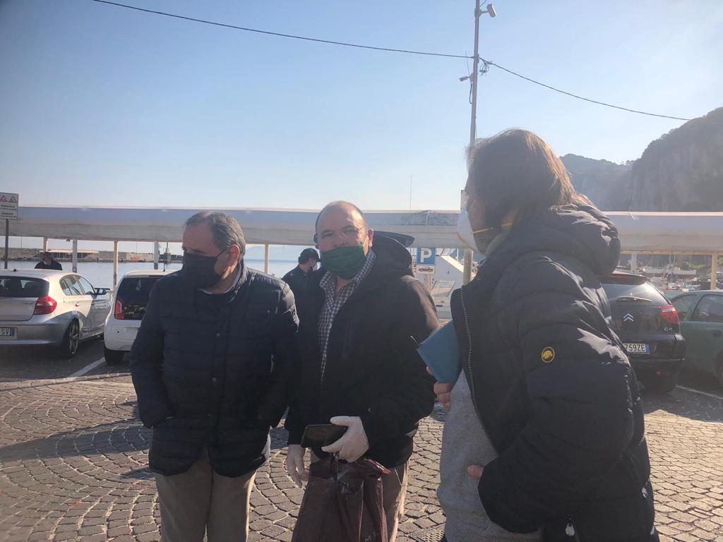 CAPRI – E’ stato il sindaco di Capri Marino Lembo in persona a recarsi stamattina al porto di Marina Grande allo sbarco della nave Caremar partita alle 7.15 da Calata di Massa e in arrivo intorno alle ore 9 a coordinare i controlli insieme al responsabile della protezione civile del comune di Capri, al presidente della Capri Servizi unitamente alle forze dell’ordine, per verificare il corretto possesso delle certificazioni necessarie in ottemperanza alle ordinanze che regolamentano gli sbarchi in questo periodo di emergenza covid. A tutti è stato reso noto che da domani senza avere indosso tute e abbigliamento di protezione idoneo non sarà più consentito lo sbarco.