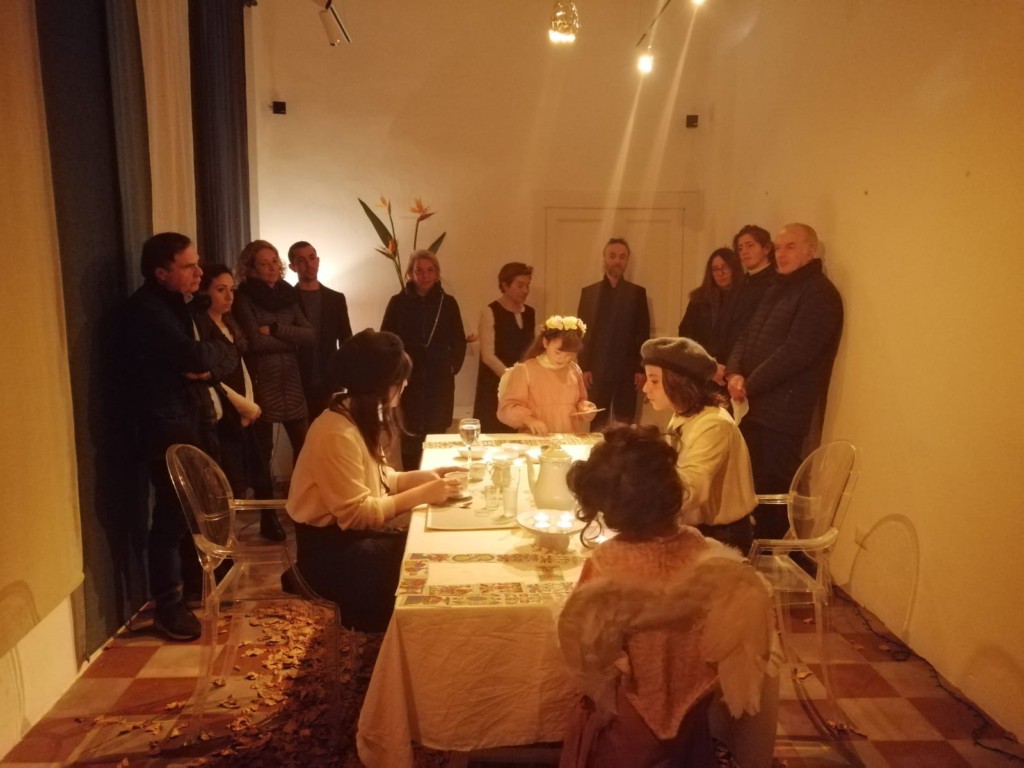 “Il Cibo degli Angeli” è in realtà una piccola festa, volta a stimolare tutti i sensi, un’azione poetica di nutrimento per l’anima e per il corpo che attende i suoi ospiti. Lungo il percorso della messa in scena che si è sviluppato attraverso diverse stanze, gli spettatori sono stati accolti dagli abitanti di una casa e accompagnati delicatamente ad attraversare un luogo in cui affioravano dei ricordi. I fortunati spettatori hanno incontrato angeli bambini, angeli senza tempo che sono lì da sempre rappresentati da Melissa Micillo, Francesca Diletta Iavarone, Rossella De Rosa, Ilaria Cecere e Anna Savoia. Tecnico del suono e delle luci: Tommaso Vitiello. Registrazione e montaggio suoni e voci: Giacomo Vitiello.