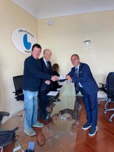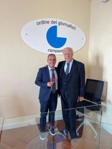 Il V.Presidente dell’Ordine dei Giornalisti Campania, Domenico Falco consegna a Napoli il tesserino di Giornalista – Pubblicista a Massimo Lionetti, Cronista Sportivo