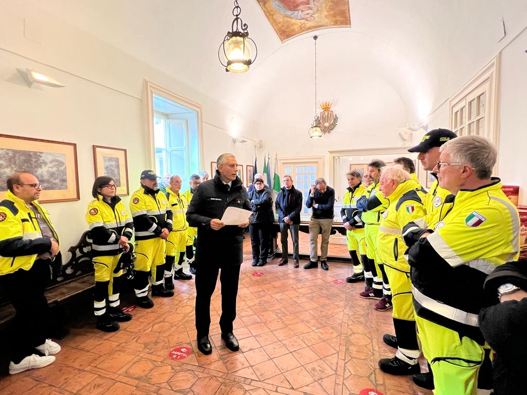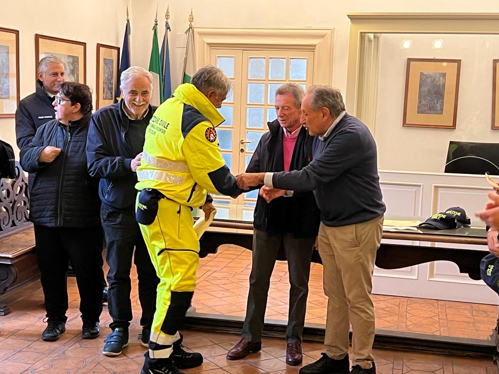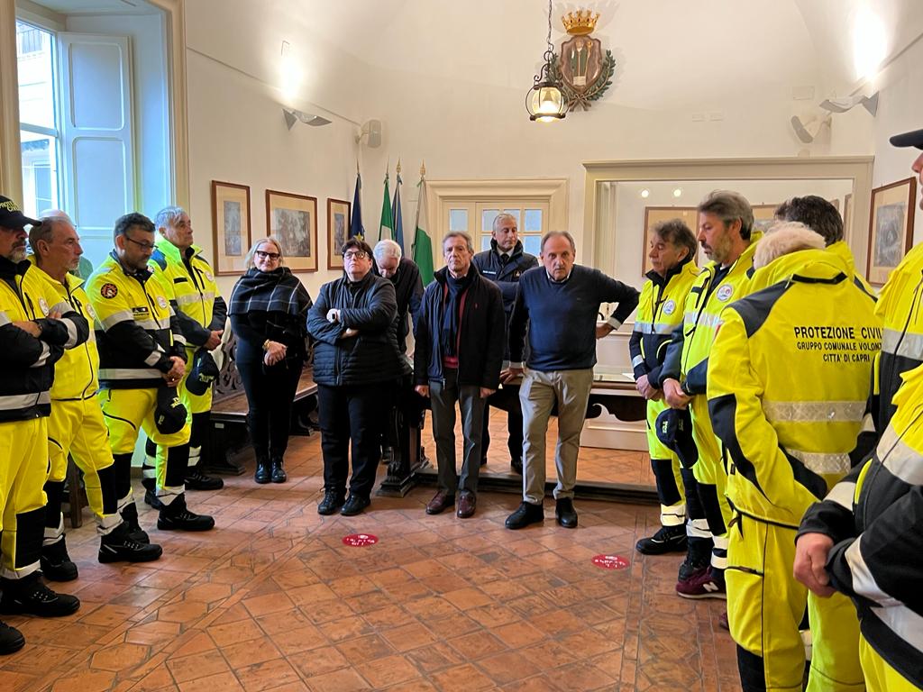 La cerimonia promossa dall’ amministrazione comunale di Anna Maria Boniello Una significativa cerimonia si è tenuta questa mattina nella sala consiliare del palazzo municipale di Capri , che domina la piazzetta, dove nell’aula della sala consiliare il sindaco Marino Lembo insieme al consigliere delegato alla sanità e Protezione Civile Bruno D’ Orazi, Responsabile della Protezione Civile il Comandante della Polizia Municipale Maggiore Daniele De Marini, e coordinatore del gruppo dei volontari capresi Costanzo Vuotto, hanno consegnato ai iscritti della Protezione Civile di Capri le pergamene con sopra scritto: Al Volontario/a del gruppo comunale di Protezione Civile, per il suo impegno, lo spirito di squadra e il senso di altruismo dimostrato nello svolgere le sue attività al servizio della Comunità. La cerimonia è stata voluta dall’amministrazione comunale in segno di riconoscenza ai giovani e meno giovani impegnati nelle attività di volontariato in un’ isola difficile qual