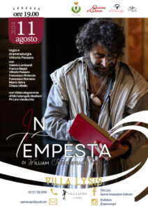Domenica 11 Agosto alle ore 19:00 andrà in scena a Villa Lysis lo spettacolo “In Tempesta” della compagnia Il Demiurgo, liberamente ispirato al dramma romanzesco di William Shakespeare “The Tempest”.