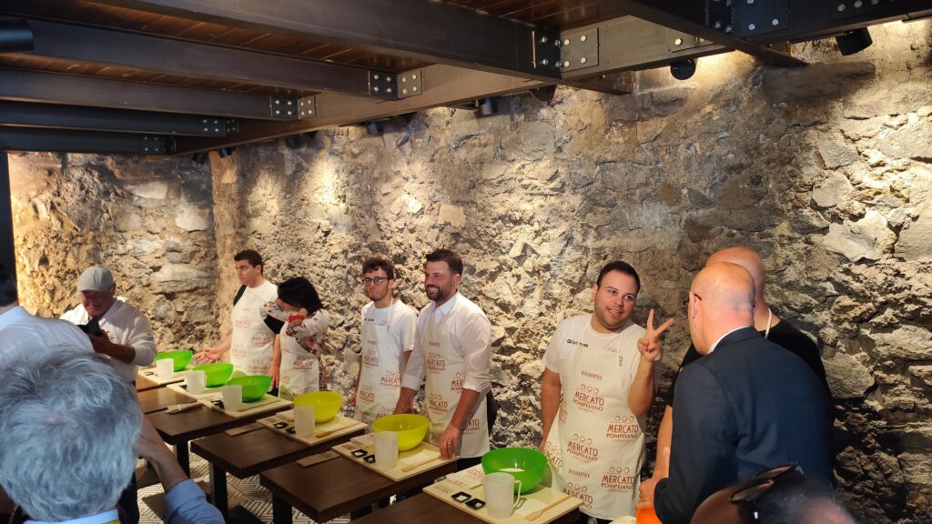 In tarda mattinata il gruppo si è spostato nel centro cittadino, presso la pizzeria Mercato Pompeiano, dove i partecipanti si sono cimentati nella preparazione dell’impasto per pizza. Un momento pratico e costruttivo che ha rappresentato, per tre ragazzi de “Il Tulipano”, la conclusione simbolica di un percorso laboratoriale di circa due mesi dedicato all’avvicinamento al mondo degli impasti e della ristorazione.