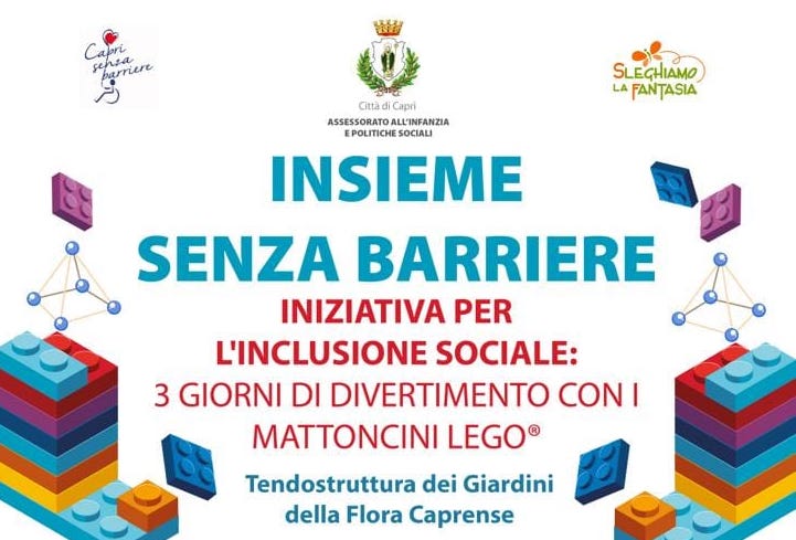 lmportante iniziativa di inclusione sociale tra divertimento e creatività, alla tendostruttura dei Giardini della Flora Caprense, con i mattoncini LEGO per dar spazio alla fantasia dei bambini, dei ragazzi e non solo.