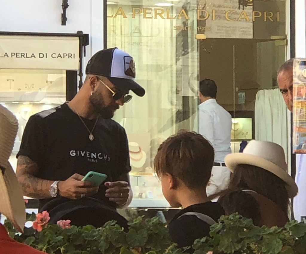 Il capitano del Napoli si è regalato un blitz vacanziero di fine luglio sull’ isola, dove è arrivato ieri mattina con la moglie Jenny e i due bambini Carmine e Christian. Gli Insigne in vacanza hanno attraversato la Piazzetta nel pomeriggio quasi in incognito: Lorenzo spingeva il passeggino con Christian e il fratellino più grande Carmine che seguiva il papà con lo zainetto sulle spalle. Pochi minuti di sosta sono serviti a rubare qualche scatto da parte dei turisti e dei curiosi.