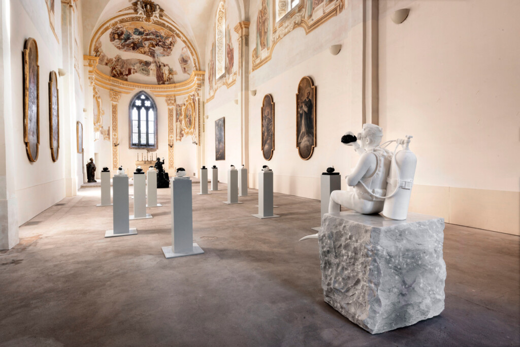 Il progetto, a cura di Melania Rossi, consiste in 16 sculture in marmo di Carrara e marmo nero del Belgio a cui l’artista ha lavorato negli ultimi quattro anni. Le opere, che saranno installate nella chiesa del complesso trecentesco, sono ispirate al rapporto tra l’uomo e i misteriosi abissi marini, all’acqua come elemento vitale e originario.