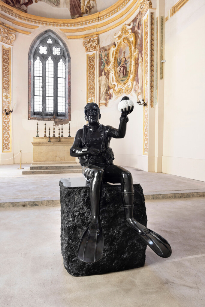 Nel monastero più antico dell’isola, un luogo spirituale immerso in una natura di luce e acqua dal forte senso cosmico, questa installazione di Jan Fabre ci ricorda che, in fondo, una persona che nuota sott’acqua torna un po’ da dove è partita, dove è iniziata e continua a rigenerarsi la sorgente della vita.