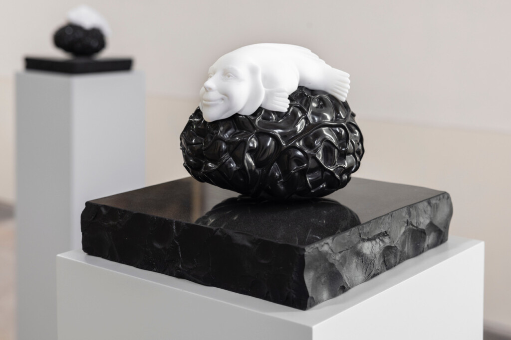 In una sorta di immersione nella sua immaginazione, Jan Fabre fa emergere curiosi esseri ibridi con corpi da pesce e volti umani adagiati su dei cervelli, perfettamente dettagliati.