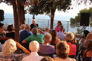 Mariano Della Corte. Capri. Con Romina Power sul Belvedere di Punta Tragara a picco sui Faraglioni si è concluso il Festival della voce, ideato e diretto da Massimiliano Finazzer Flory che in quest’ultima settimana di luglio ha voluto ridare voce alla cultura. Ieri nell’incantevole scenario della terrazza che affaccia sui Faraglioni, Romina Power in un’insolita veste di scrittrice, ha parlato del suo libro Karma Express insieme all’attore-regista e ideatore dell’evento culturale Massimiliano Finazzer, davanti ad un folto pubblico di spettatori che ha ascoltato le parole di Romina, la quale ha suggerito nel corso del suo intervento “Capri deve recuperare il valore del silenzio, l’amore come progetto universale e poi il viaggio. L’isola infatti ha rappresentato per molti intellettuali la sintesi del viaggio, come esperienza che può cambiare la vita”. Poi dalla Piazzetta di Tragara Finazzer e Romina si sono trasferiti nella Piazzetta della Funicolare dove è stata data voce ai disabili. Un incontro a cui hanno partecipato istituzioni civili e religiose, organizzato dall’amministratrice della Funicolare Anna La Rana che sta portando avanti un progetto di abbattimento delle barriere architettoniche e la creazione di alcuni spazi per i diversamente abili all’interno della funicolare, un tema molto sentito, prima dello spettacolo che ha chiuso definitivamente il Festival della voce di quest’anno “Esercizi di stile” di Raymond Queneau. Lo spettacolo si è svolto sulla Terrazza della stazione della Funicolare ed ha visto un’ entusiasta partecipazione di pubblico.