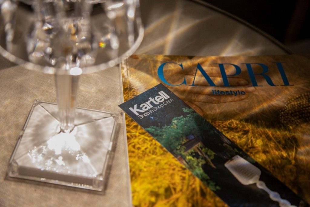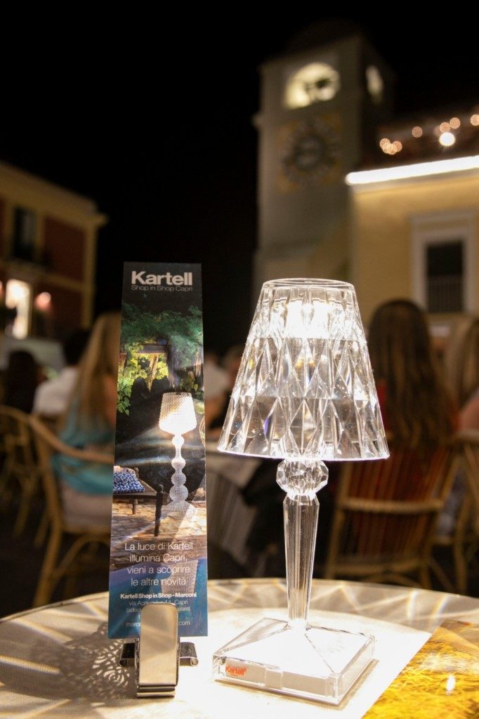 Grande novità per il design a Capri con l’apertura di un nuovo punto vendita di “Kartell” sull’isola più glamour d’Italia. Il fascino seducente dell’isola azzurra è la location d’eccezione in cui il marchio ha saputo coniugare il potere evocativo del suo design con quello di luoghi entrati nell’immaginario collettivo, come i set più riconosciuti dell’estate italiana per eccellenza. Nasce così una partnership con il gruppo “Russo Capri” e l’apertura di un punto vendita in via Acquaviva 14, all’ interno della boutique Marconi, uno spazio multibrand a due piani con una vista mozzafiato. Un contesto che celebra pezzi cult e novità, in un connubio fra moda e design, che esalta la ricerca di abbinamenti esclusivi, dando vita a contaminazioni fatte di sperimentazione e innovazione. Il layout espositivo dello store mescola infatti le tante novità e proposte di “Kartell” con l’eleganza delle collezioni fashion più attuali. Novità dell’estate caprese 2019, per celebrare la sinergia tra i due brand Russo e Kartell, saranno ogni sabato le “Kartell Night”, che illumineranno le terrazze degli alberghi, bar e ristoranti più glamour dell’isola. Molto gradevole l’impatto ieri sera, per la prima di queste notti di stile, in cui le luci multisfaccettate di numerose lampade “Kartell” hanno illuminato con grande eleganza il corner del Gran Caffè della Piazzetta di Capri. Presenti per la prima notte di design, in Piazzetta, Claudio Luti presidente di Kartell e del Salone del Mobile di Milano, insieme alla moglie Maria Teresa Luti con Roberto e Daniela Russo del “Gruppo Russo Capri”. Tante le novità attese per le prossime “Kartell Night” con particolari focus outdoor e scenografie diverse che animeranno le magiche notti capresi, offrendo agli abitanti e vacanzieri uno spettacolo nello spettacolo. Sabato prossimo, ad illuminarsi ancor più di eleganza, sarà la terrazza bar dello storico Grand Hotel Quisisana di Capri.