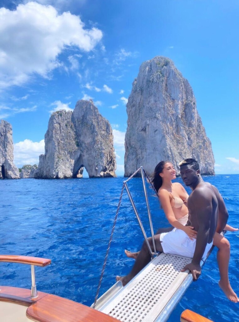 I calciatori amano Capri . Unodi questi è l’ attaccante della Sampdoria Keita Balde che tornato sull’ isola Azzurra insieme alla modella Simona Guatieri, sua compagnain dolce attesa, a bordo di un Pershing 43, uno dei mezzi della Boat Capri Service di Danilo, Marco e Pierpaolo, i giovani imprenditori che con la loro flotta di charter di lusso accolgono e portano in giro intorno all’ isola i vip dello star system. Una vacanza breve quella di Balde, due giorni con arrivo di domenica per evitare il caos del week end. Due giorni di sole, mare con la visita alla Grotta Verde, una puntata in palestra per mantenere la forma fisica e buon gourmet serale nei ristoranti dell’ isola ma con un occhio rivolto al futuro. Quello immediato riguarda la prossima stagione agonistica, ed in questo senso occhi indiscreti hanno colto l’ attaccante blucerchiato trasbordare al largo dei Faraglioni sullo yacht che ospitava il neo allenatore dell’ Inter Simone Inzaghi, suo vecchio mister alla Lazio con il quale potrebbe aver affrontato la possibilità di tornare a vestire il nerazzurro del Campioni d’ Italia nel prossimo campionato. Il calciatore ha già militato nella formazione milanese nel campionato 2018/19.