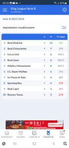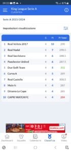 L’attenzione della giornata numero 4 del campionato è girata tutta intorno a Real Velista/Curva A. Capolista contro campione di Lega. Alla fine, il risultato accontenta entrambe, forse di più però va bene alla squadra di Andrea D’Apice che può continuare il suo percorso da capolista. La gara subisce il primo sussulto appena cominciata quando Osimhen porta in vantaggio Curva A. Casanova, però, non trova il colpo del KO e alla fine il Real Velista con un serie di sufficienze porta via il pari. Alle spalle della capolista bussa la neopromossa Real Nadal che liquida 3 a 0 Capri Watch. Gennarino e Raffy possono esultare con Politano e Gonzales. Festival del gol in Due Golfi/Panchester che termina 5 a 3. Il poker di Martinez non basta per la sicurezza a Fabrizio Cataldo visto la reazione di Gudmunsson. Alla fine la decide Nzola. Prima vittoria di Due Golfi che sale a 5 punti. Prima vittoria anche per il Real Castello che strapazza la Dinamo Lo Capo per 7 a 0. Non c’è storia, Nicolò Serena sfoggia un Orsolini in versione top player e può tirare un sospiro di sollievo. Nella giornata delle prime vittorie non manca quella del Mulo, unica squadra della Lega ad aver giocato in tutte le categorie compresa la Lnd che ora non è più disputata. Colombo e Lukaku stendono il Real Sacristano. Campionato equilibratissimo, tutte hanno almeno 4 punti, media altissima. Panchester/Real Nadal sfida clou del prossimo fine settimana.