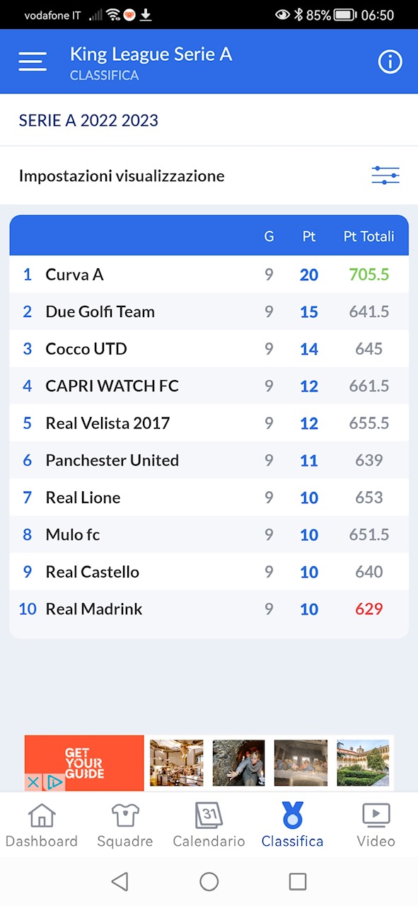 Giornata particolare che vede frenare clamorosamente tutte le squadre di testa e che vede maturare una classifica che adesso pone, incredibilmente, 7 squadre in soli due punti. La sconfitta di Curva A, 2 a 1, sul campo del Real Madrink fa meno male se si considera la contemporanea sconfitta di Due Golfi, 3 a 1 contro Real Velista. Il distacco, al termine del girone di andata, rimane sempre di 5 punti. Cristian Aversa e Fabrizio Romano esultano grazie al gol di Jovic e al rigore di Calhanoglu. La doppietta di Dimarco spiana la strada di Andrea D’Apice. Frenata anche per Cocco e Capri Watch. Due a due contro il Real Castello e uno a uno contro Panchester. Infine bella vittoria di Mulo, 4 a 1, in casa del Real Lione. Con questo successo Enrico Piacente agguanta proprio Mario Lionetti in classifica. Difficile perdere se in questa giornata hai Lozano. La classica Real Lione/Curva A apre il girone di ritorno.