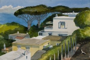 “In tre occasioni ho avuto il privilegio di vivere e lavorare nella Villa San Michele a Capri – racconta Peter Sternäng. Sempre ad agosto, il periodo più caldo e turistico dell’anno, ma è quello che preferivo per poter stare all’aperto a dipingere acquarelli tutto il giorno. Ho dipinto la vista dalla mia terrazza, in condizioni di luce sempre diverse.