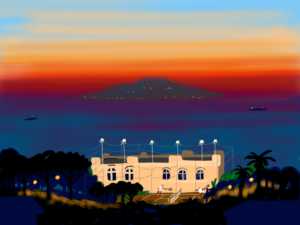 I turisti sono diventati i miei modelli preferiti quando andavo al mare. Soprattutto a Marina Grande, dove corre una spiaggia stretta, lunga poche centinaia di metri, migliaia di persone nuotavano e prendevano il sole ogni giorno, e lì ho trovato modelli più interessanti di quanti ne abbia mai avuti nelle mie scuole d’arte. La sera mi trasformavo in un pittore iPad e uscivo a disegnare paesaggi notturni. Poiché l’unica fonte di luce da cui dipendi proviene dalla lastra stessa e la luce del giorno rende solo più difficile vedere l’immagine, è vantaggioso dipingere al buio.