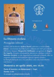 Il Centro Caprense presenta “La Dimora Svelata”, una passeggiata culturale guidata dall’architetto Andrea Nastri dedicata alla scoperta di una delle residenze più affascinanti e meno note dell’isola: Casa Eliana.