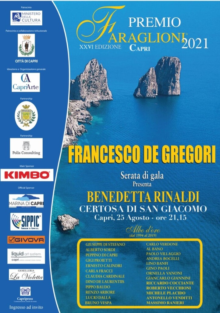 La XXVI Edizione del Premio Faraglioni incoronerà mercoledì sera nella Certosa di San Giacomo il “Principe” della Musica Italiana Francesco De Gregori