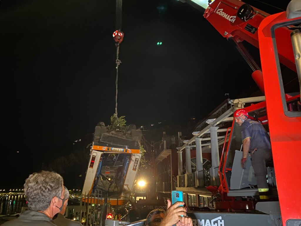 Un imponente impiego di uomini e di mezzi e la tenacia dei Vigili del Fuoco e delle maestranze, ininterrottamente al lavoro per dodici ore, dalle 9 di ieri mattina alle 21: tanto è durata l’ operazione di recupero della carcassa del pullmino dell’ Atc che il 22 luglio è volato nella scarpata che fiancheggia la spiaggia libera di Marina Grande a Capri, precipitando nel vuoto insieme ai passeggeri, tredici dei quali rimasti feriti, e all’ autista, il 32enne Emanuele Melillo, che nell’ incidente ha perso la vita.