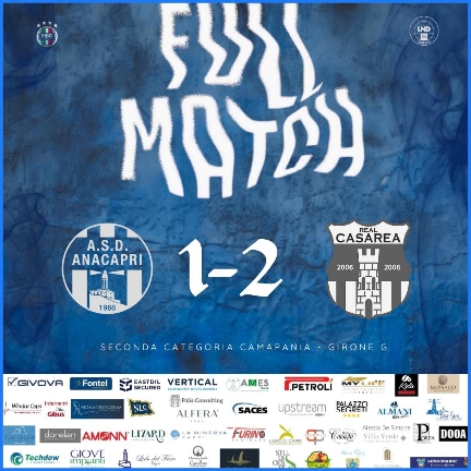 Ad inizio ripresa il Casarea trova il raddoppio sempre con De Marzo che trasforma un calcio di rigore. In rapida successione debuttano in prima squadra Luca Scarpato 2005, Andrea Rustani 2004, Andrea Pipolo 2007 e Gennaro D’Alessio 2008. La squadra di Damecuta prova in tutti i modi a riaprila. Ci provano Ipri e Maresca da lontano, e su tutti ancora Alberino che su punizione chiama il portiere ospite ad un intervento complicato. Al minuto 91 Karim Astarita è bravissimo a scaraventare in rete in girata il pallone dell’uno a due. È troppo tardi però l’Anacapri dei giovani, gioca la sua migliore partita nel giorno in cui arriva la prima sconfitta stagionale.