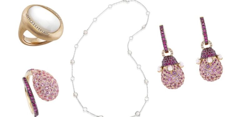Era il 1944 quando Pietro Capuano , fondatore di Chantecler , affidava alla sua campana un messaggio di pace, offrendola simbolicamente in dono al presidente americano Roosevelt . Attingendo alle leggende capresi, venivano impressi nel bronzo alti valori, auspici e significati positivi. Da quel giorno, la campana è diventata l’elemento più riconoscibile e simbolico dell’identità di Chantecler. Nel 2024 la maison ne celebra l’ottantesimo anniversario con l’Anno della Campana: quattro campanelle in edizione limitata raccontano altrettante personalità femminili che attraverso le decadi hanno segnato la storia del brand. La prima, dedicata a Jackie Kennedy Onassis , è stata presentata a Vicenzaoro . L’Anno della Campana abbraccia però tutte le collezioni Chantecler, arricchendole di creazioni inedite. I nuovi modelli Joyful , ad esempio, si vestono di full pavé di diamanti o presentano un delicato serti di zaffiri rosa dégradé abbinato all’energia degli zaffiri buganvillea. La versione pavé si miscela naturalmente con quella in pietre dure, creando accostamenti inattesi. Una veste rinnovata e ancora più preziosa, che completa e arricchisce la collezione, giocando su possibilità, rifrazioni e riflessi davvero magici. Le proposte Enchanté puntano invece su forme fluide, per tre nuove parure. Pietre traslucide, lapislazzuli, malachite e moonstone con una vibrazione di luce interna e misteriosa, sono incastonate in oro giallo e rosa satinato e sabbiato. L’incassatura e la struttura dell’anello e degli orecchini seguono e assecondano la pietra senza stacchi o spigoli di sorta. Infine, le due parure Fiori di Capri una in titanio colorato e diamanti, l’altra in zaffiri blu e oro si compongono rispettivamente in choker, bracciale, anello e orecchini. Fiori di Capri si colloca sul filone dell’ispirazione naturale e della flora caprese, che incarna tutta la maglia dell’isola.