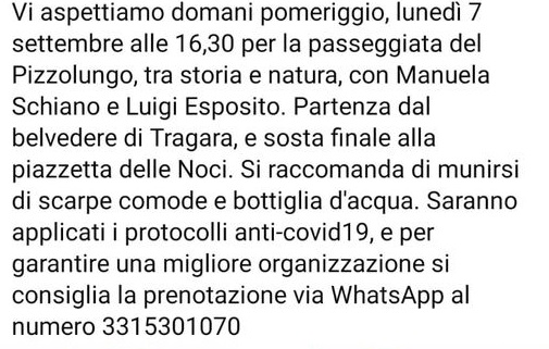 L’assessorato all’Infanzia del comune di Capri organizza per oggi pomeriggio una Passeggiata al Pizzolungo